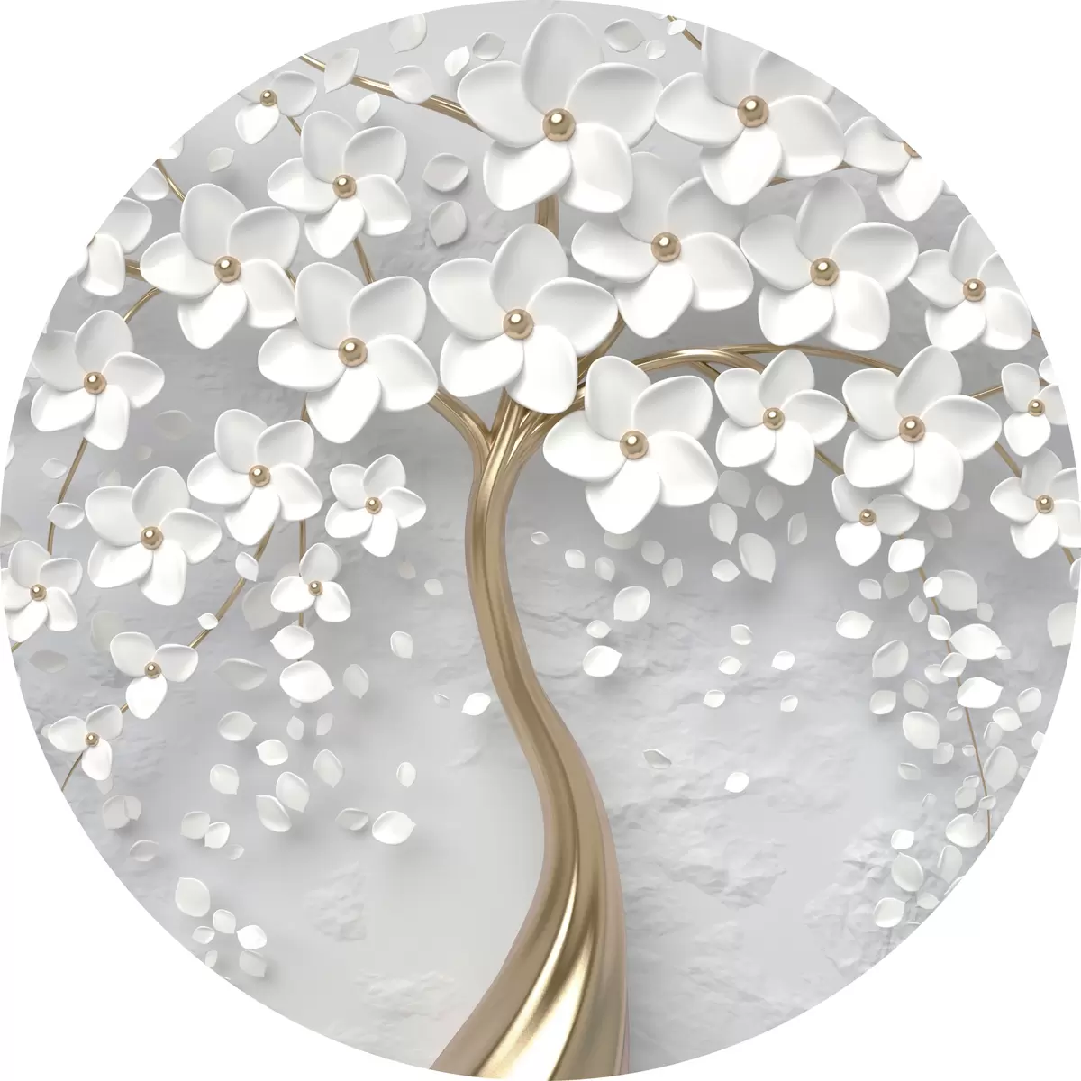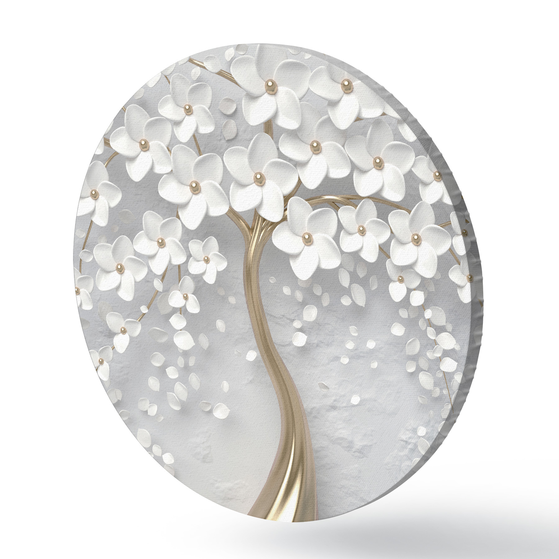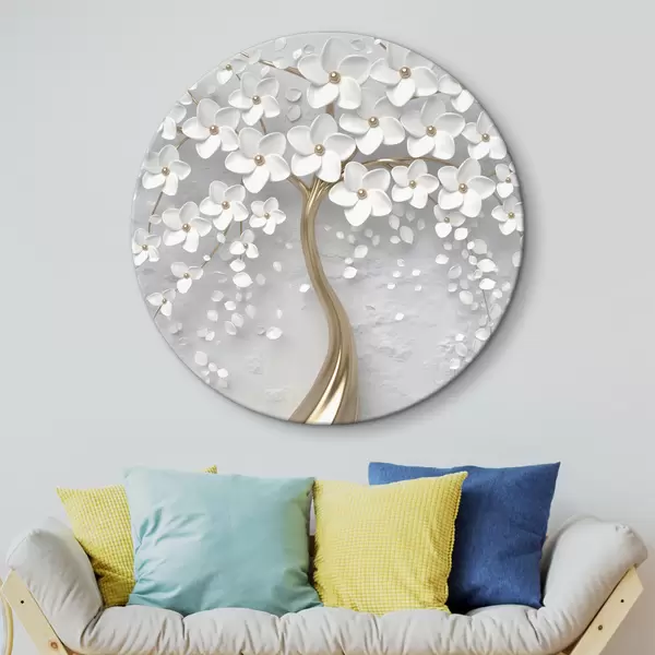 Apaļas gleznas Apjomīgs koks ar daudz baltiem ziediem r35856