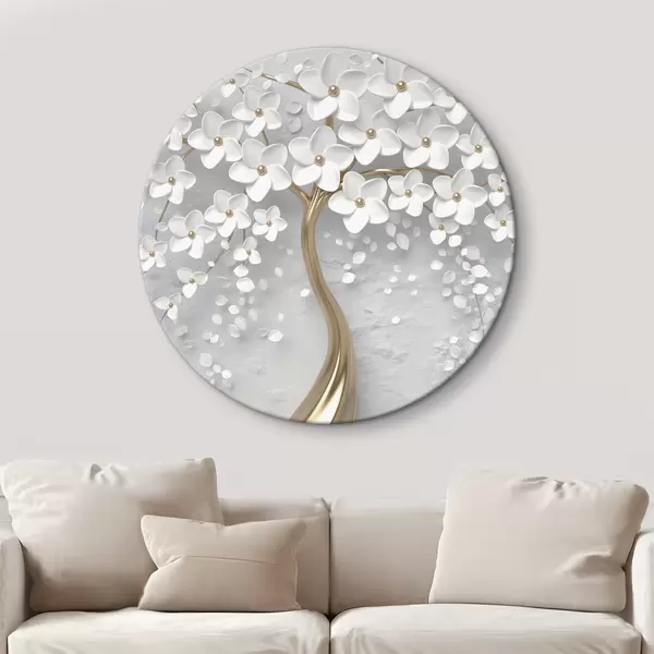 Apaļas gleznas Apjomīgs koks ar daudz baltiem ziediem r35856
