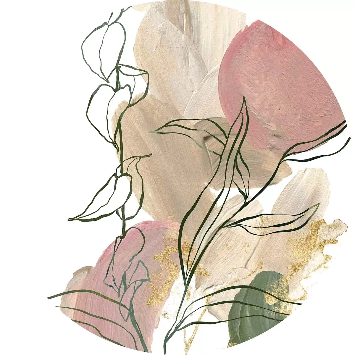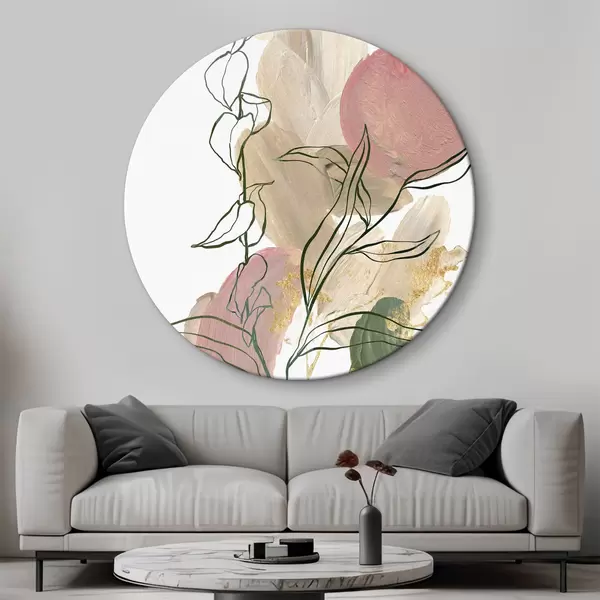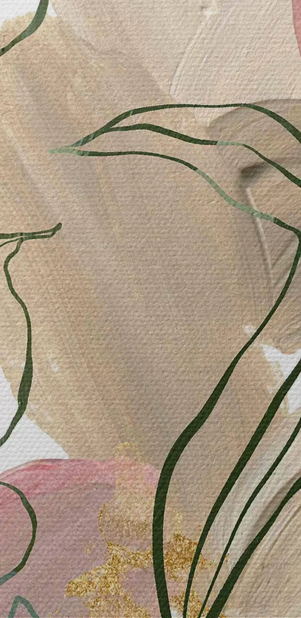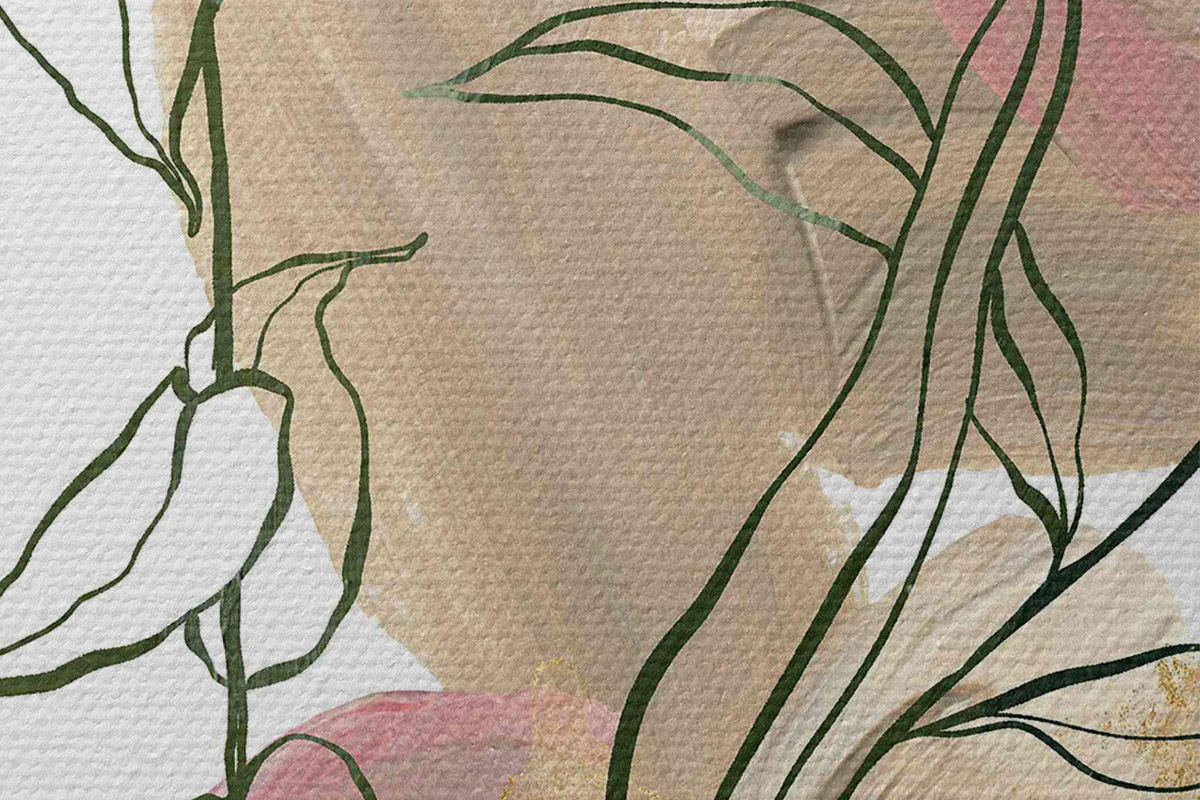 Attēls Akvareļkrāsas rudens kompozīcija ar lineāriem zariem, rozā un zaļiem plankumiem Nr r35949