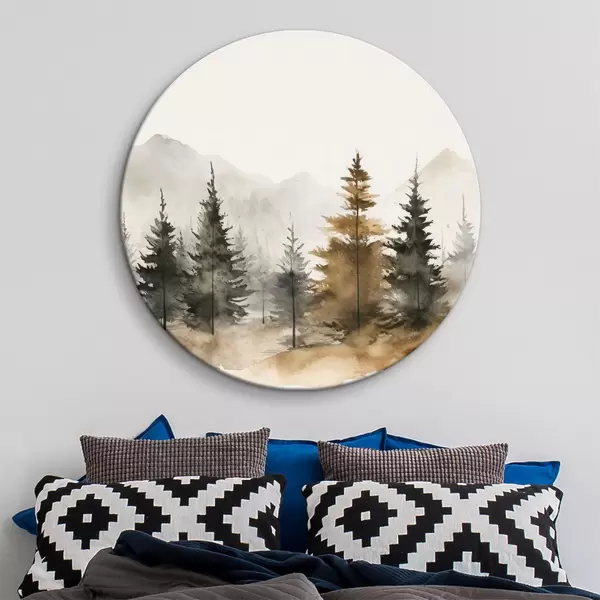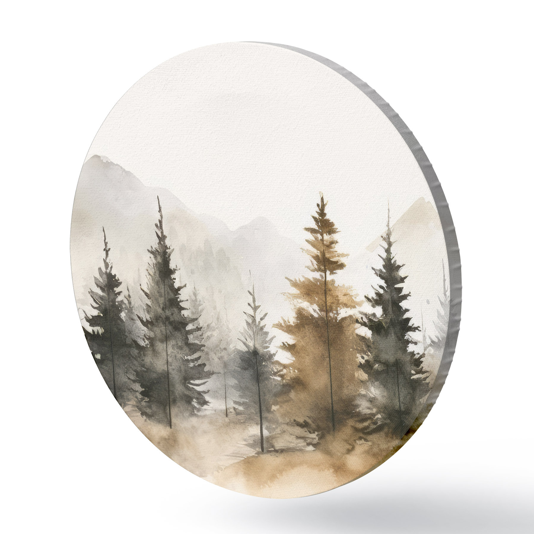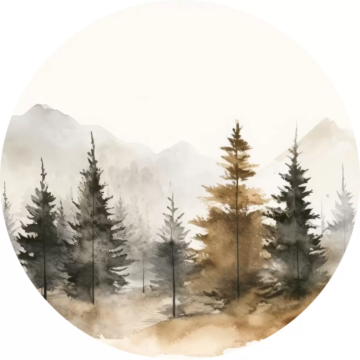 Apaļas gleznas Akvareļu egles uz kalnu fona r36010