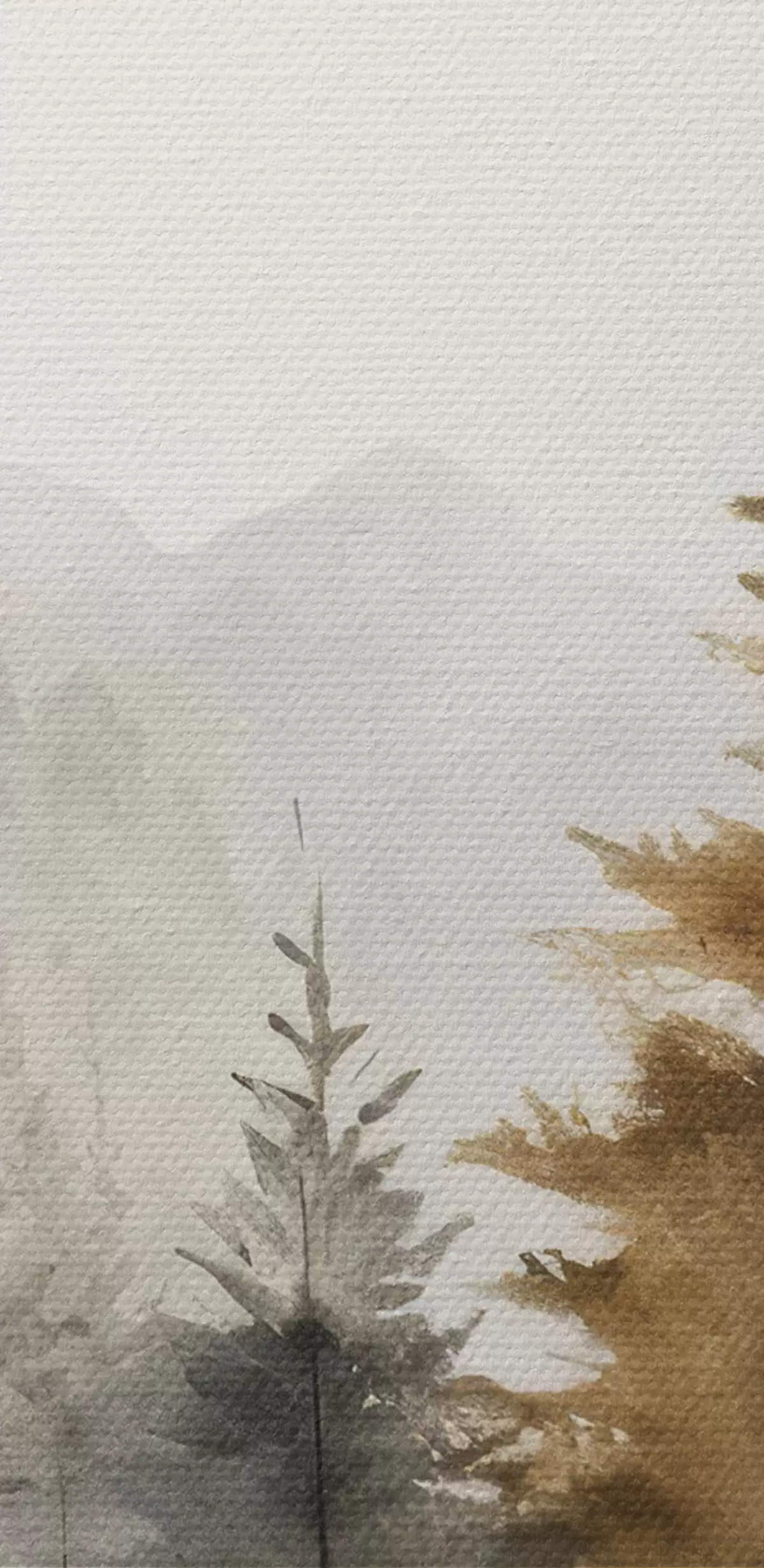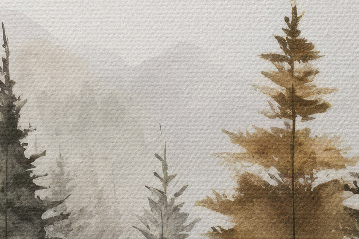 Attēls Akvareļu egles uz kalnu fona Nr r36010
