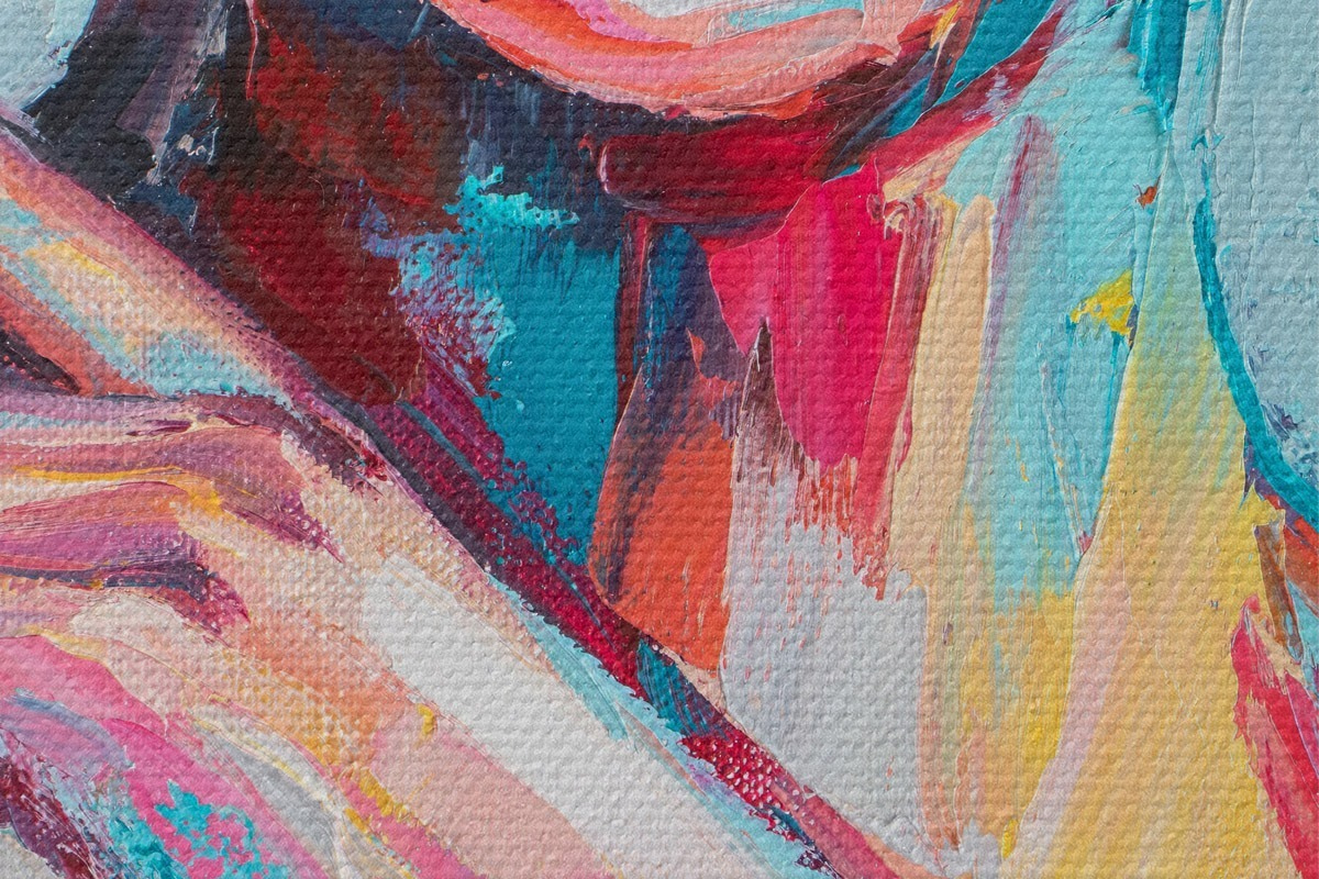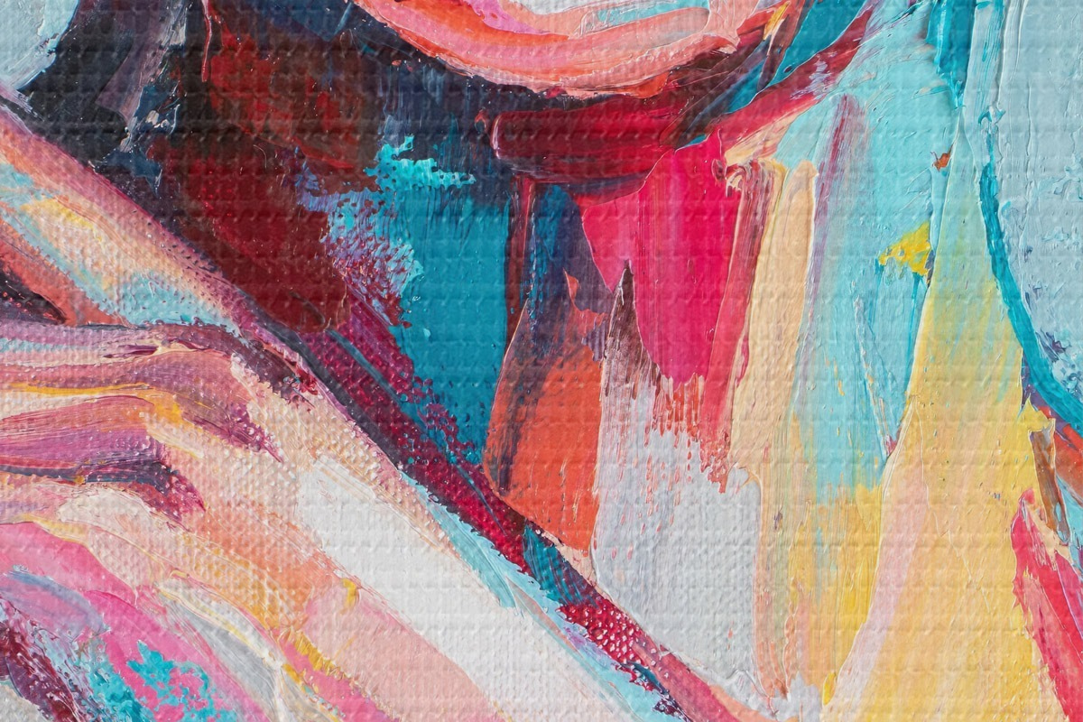 Smalkais diegu pinums uz šī audekla atgādina profesionālu mākslinieku audeklu virsmu.
