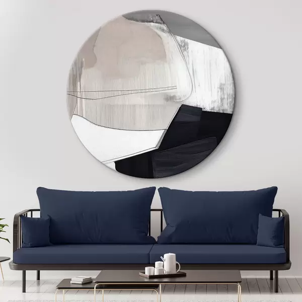 Apaļas gleznas Abstraktā māksla melnbaltos toņos r36039