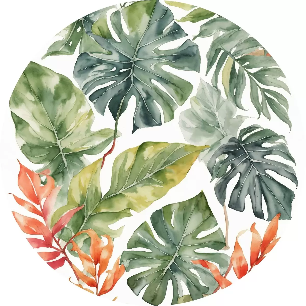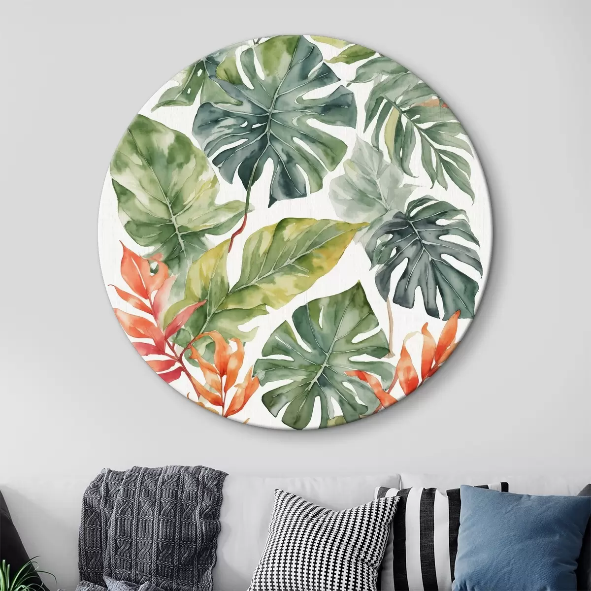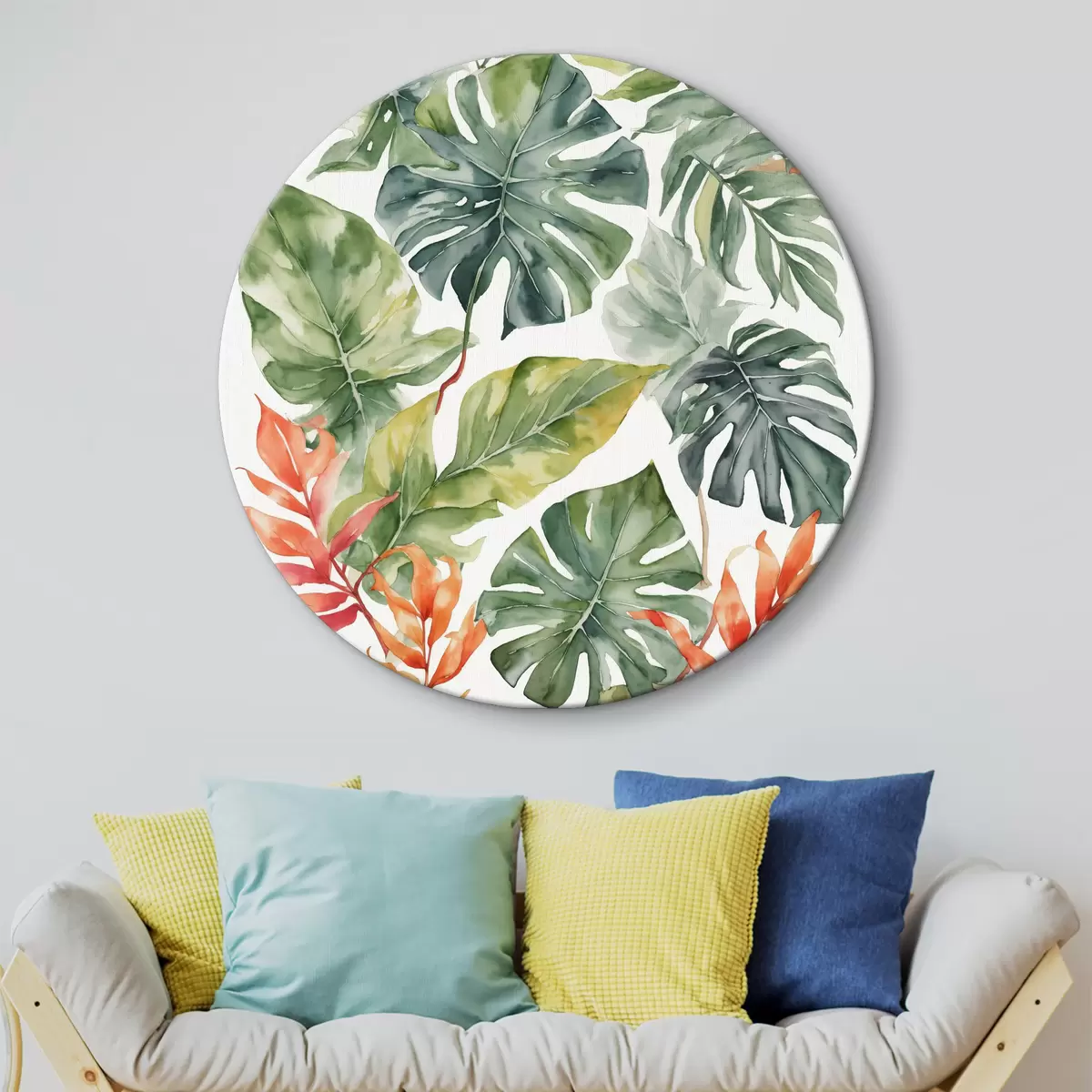 Apaļas gleznas Tropu krāsainas lapas r36131