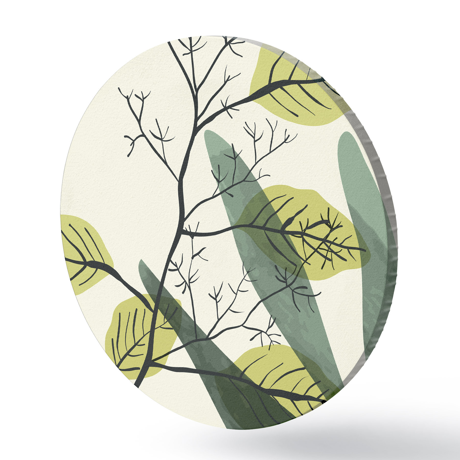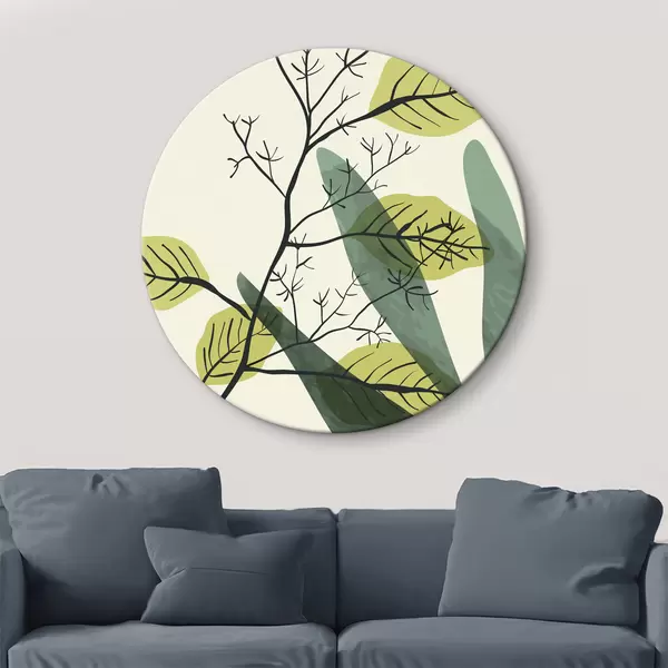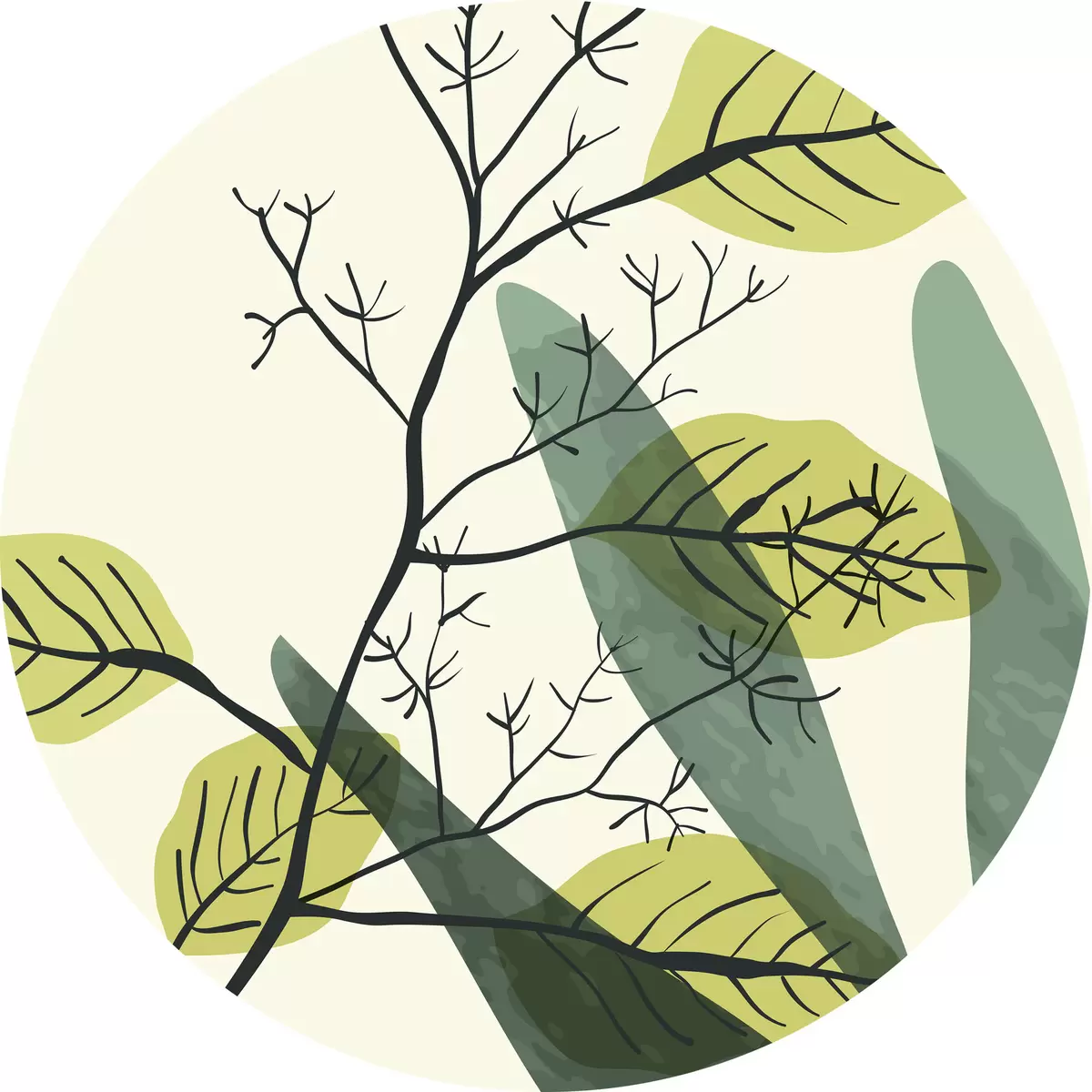 Apaļas gleznas Akvareļa zīmējums ar zaru ar dzeltenām lapām r36134