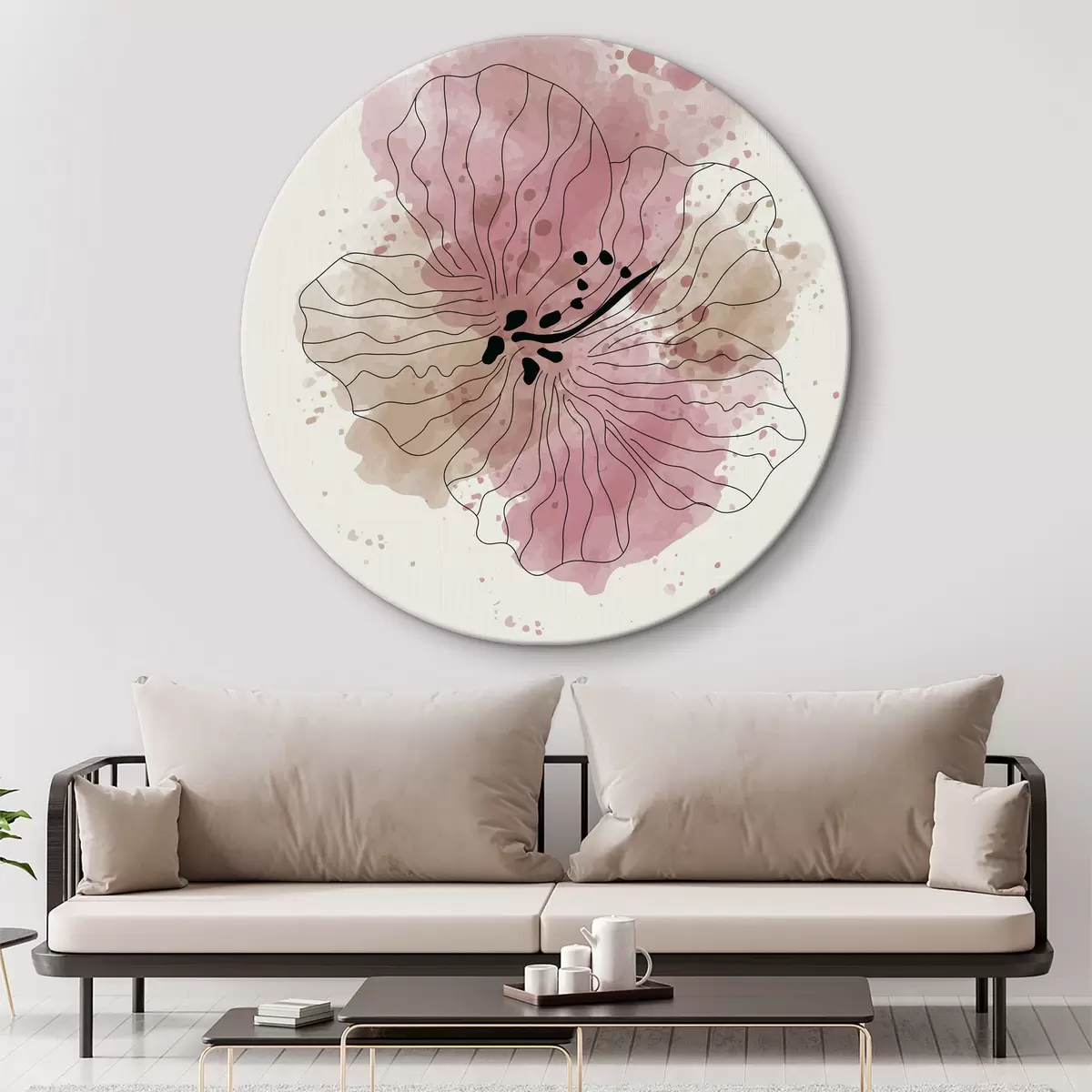 Apaļas gleznas Rozā sārtums akvarelī r36136