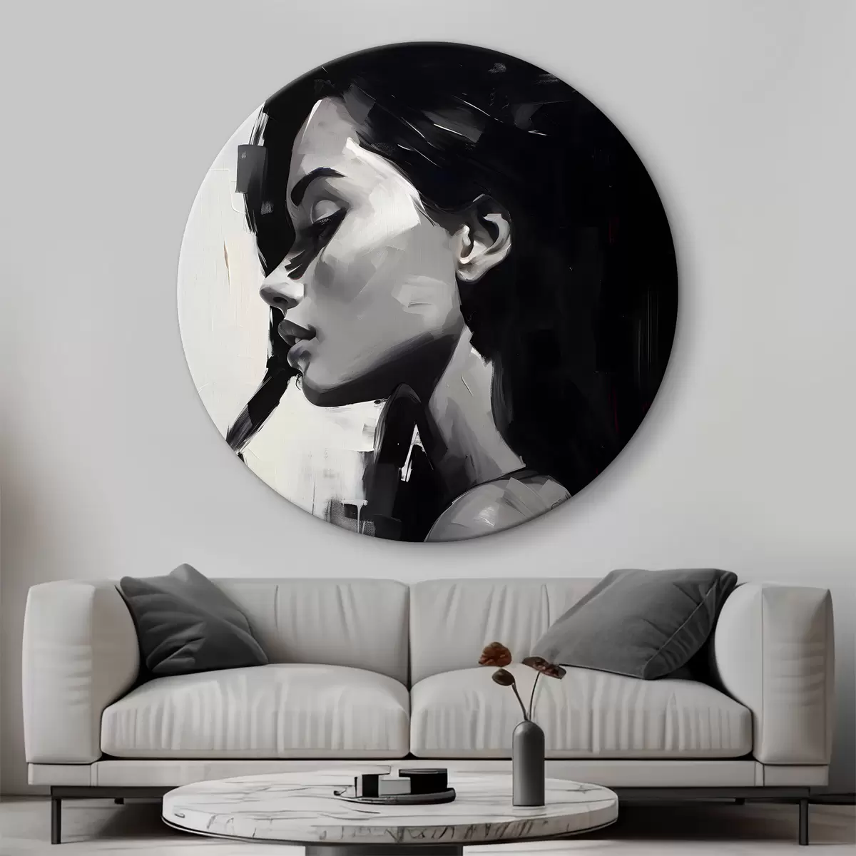 Apaļas gleznas Skaistas sievietes juteklisks portrets r36158