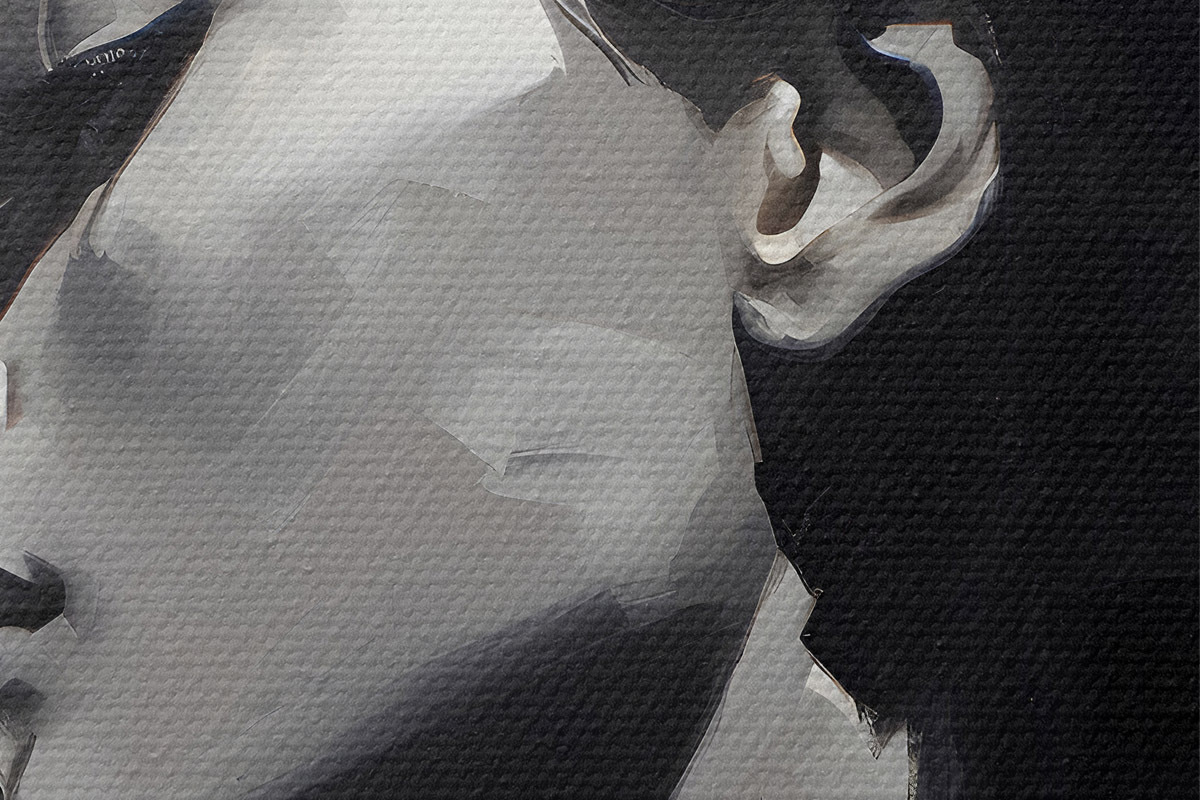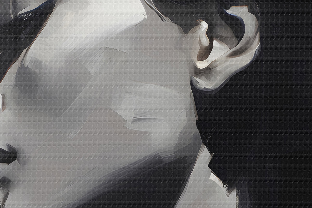 Smalkais diegu pinums uz šī audekla atgādina profesionālu mākslinieku audeklu virsmu.