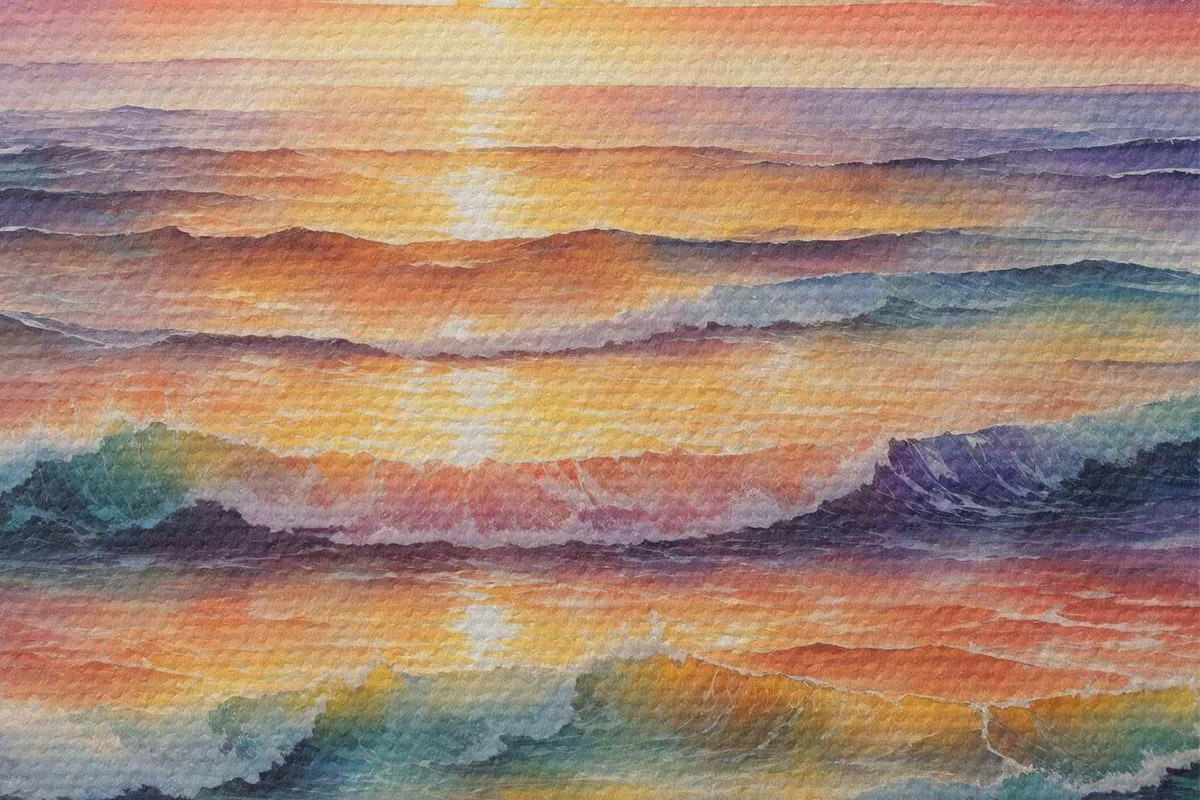 Attēls Saulrieta skats no pludmales akvarelī Nr r36241