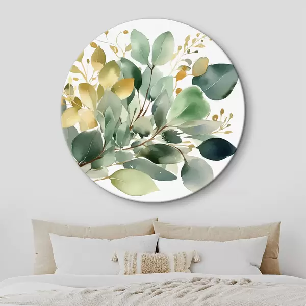 Apaļas gleznas Eikalipta zaru pušķis akvareļu stilā r36365