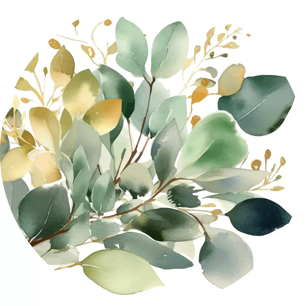 Apaļas gleznas Eikalipta zaru pušķis akvareļu stilā r36365