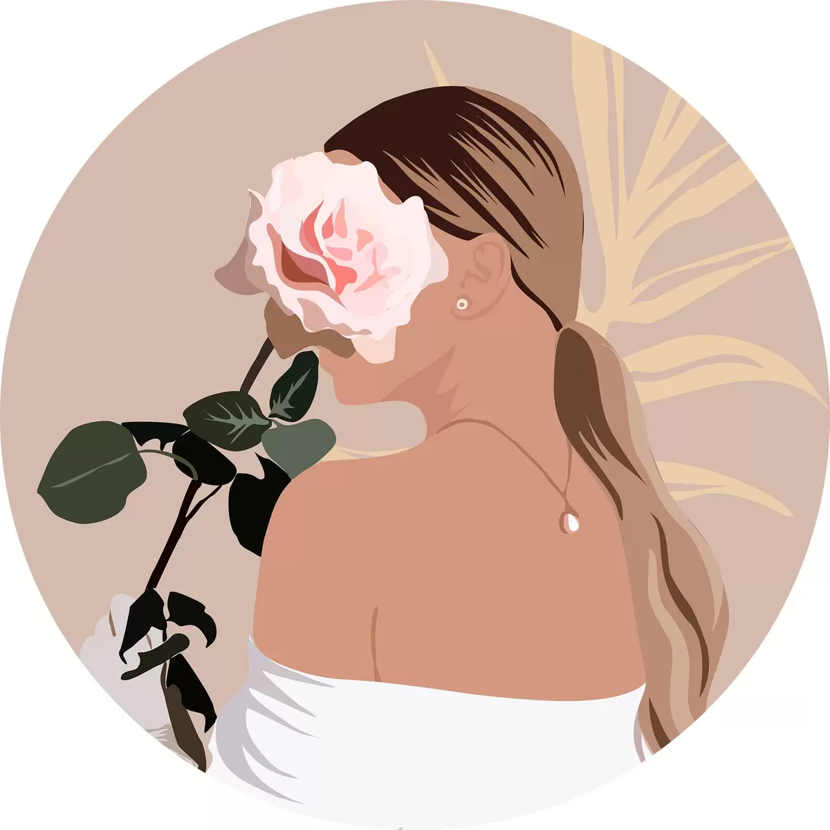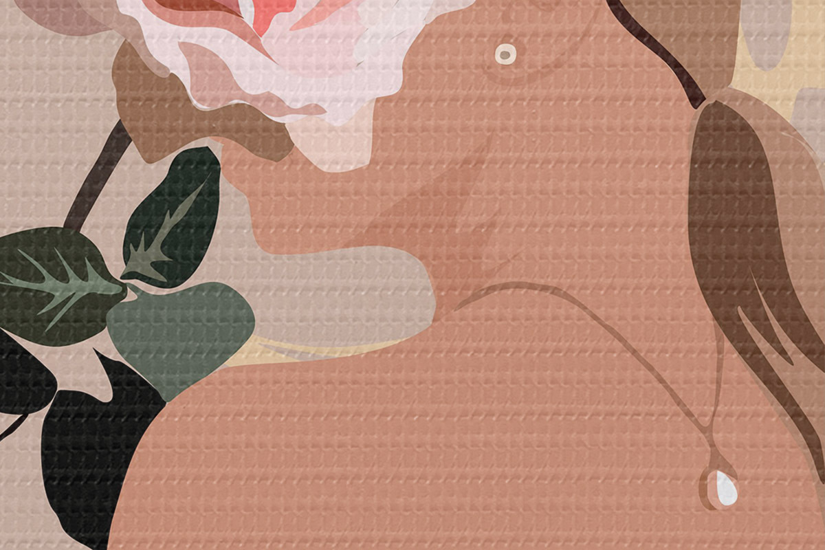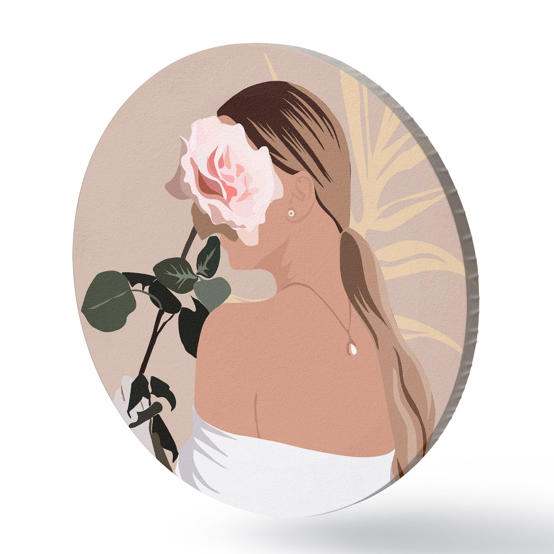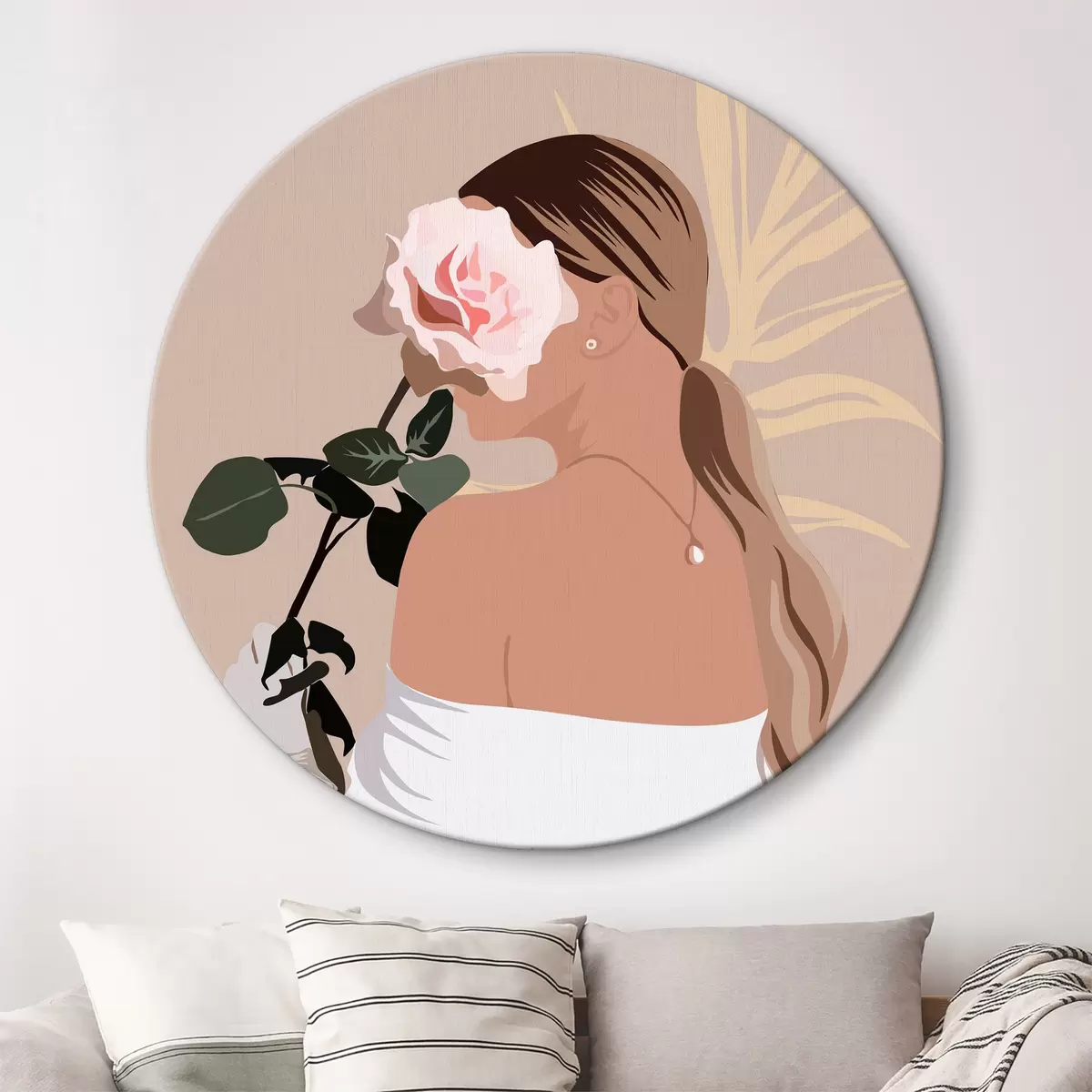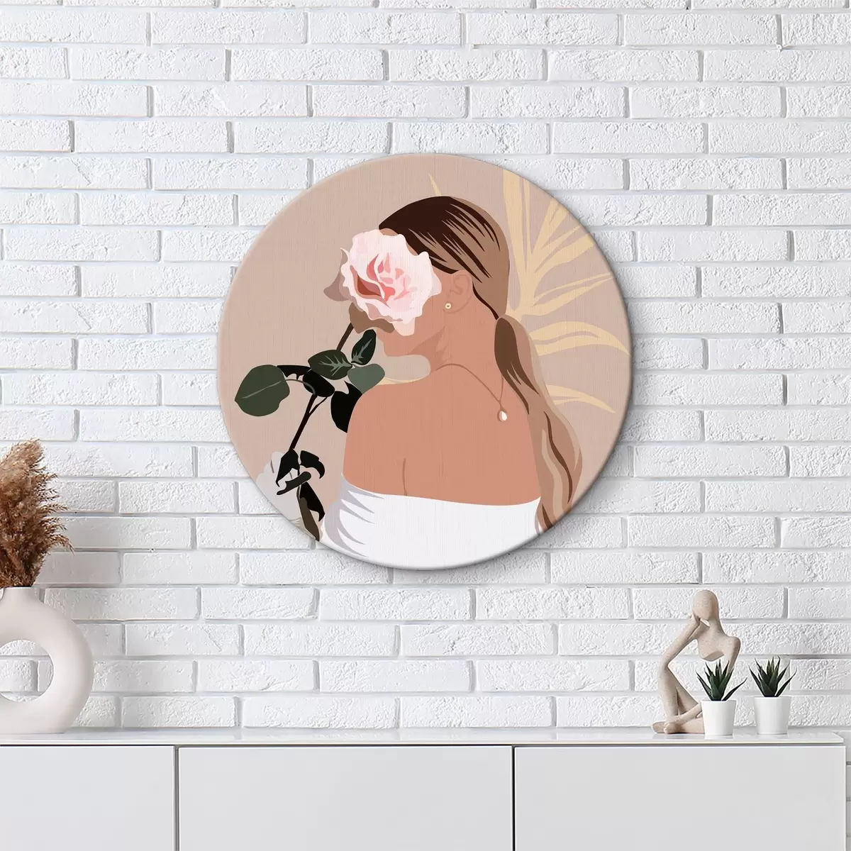 Attēls Meitene ar rozā rožu abstrakts boho stils Nr r36366
