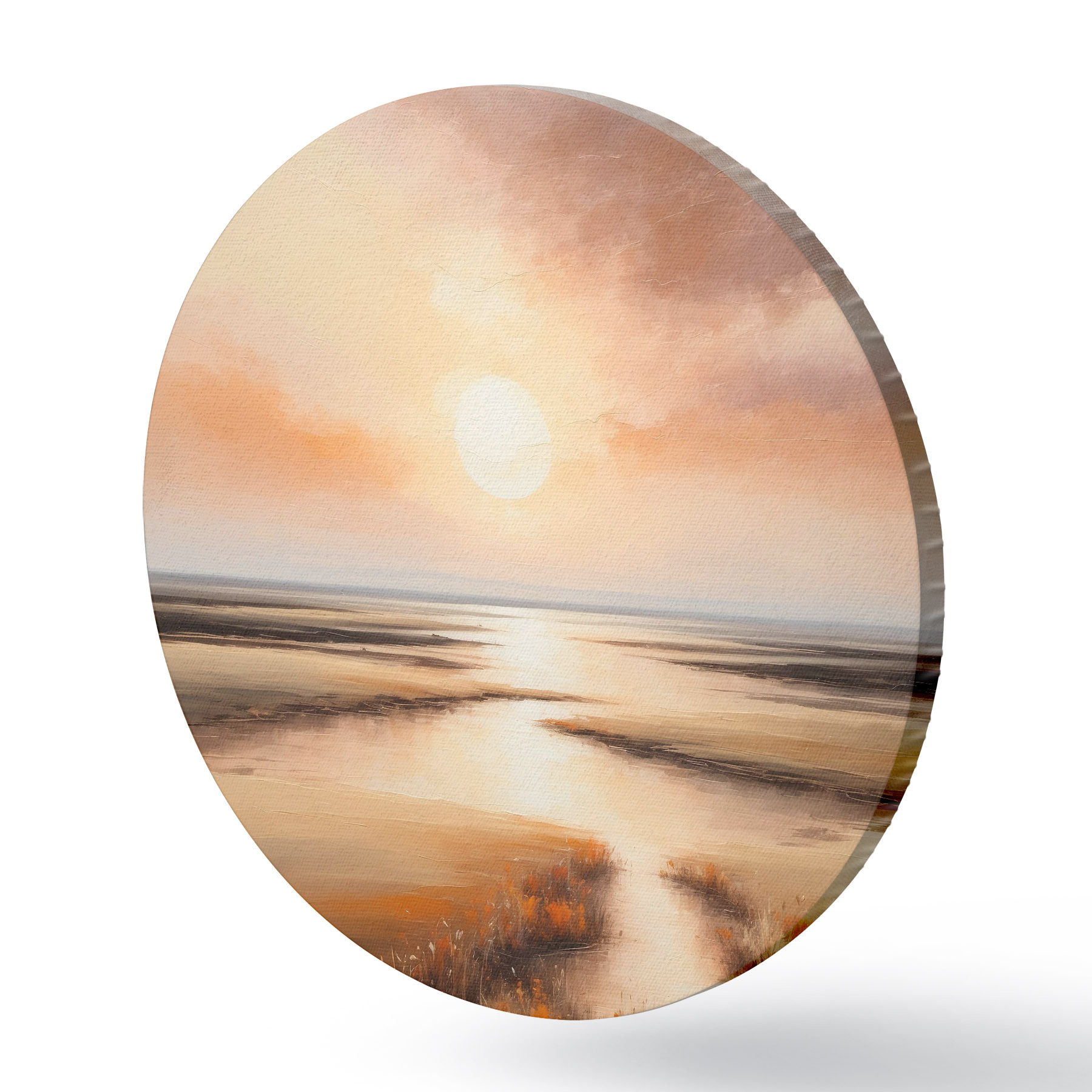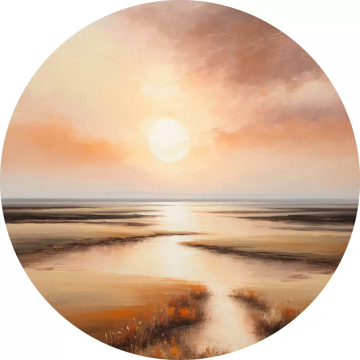 Apaļas gleznas Skats uz dīķi rītausmā r36436