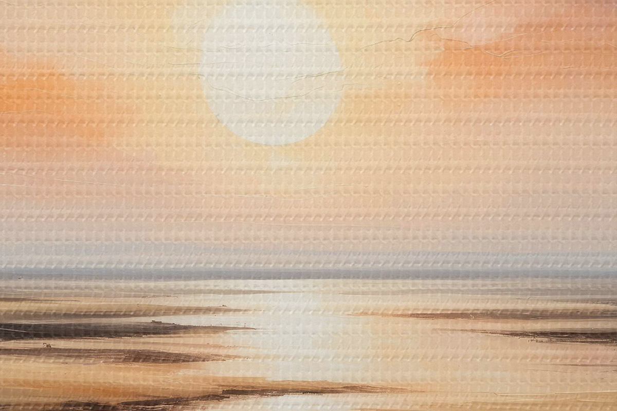 Smalkais diegu pinums uz šī audekla atgādina profesionālu mākslinieku audeklu virsmu.