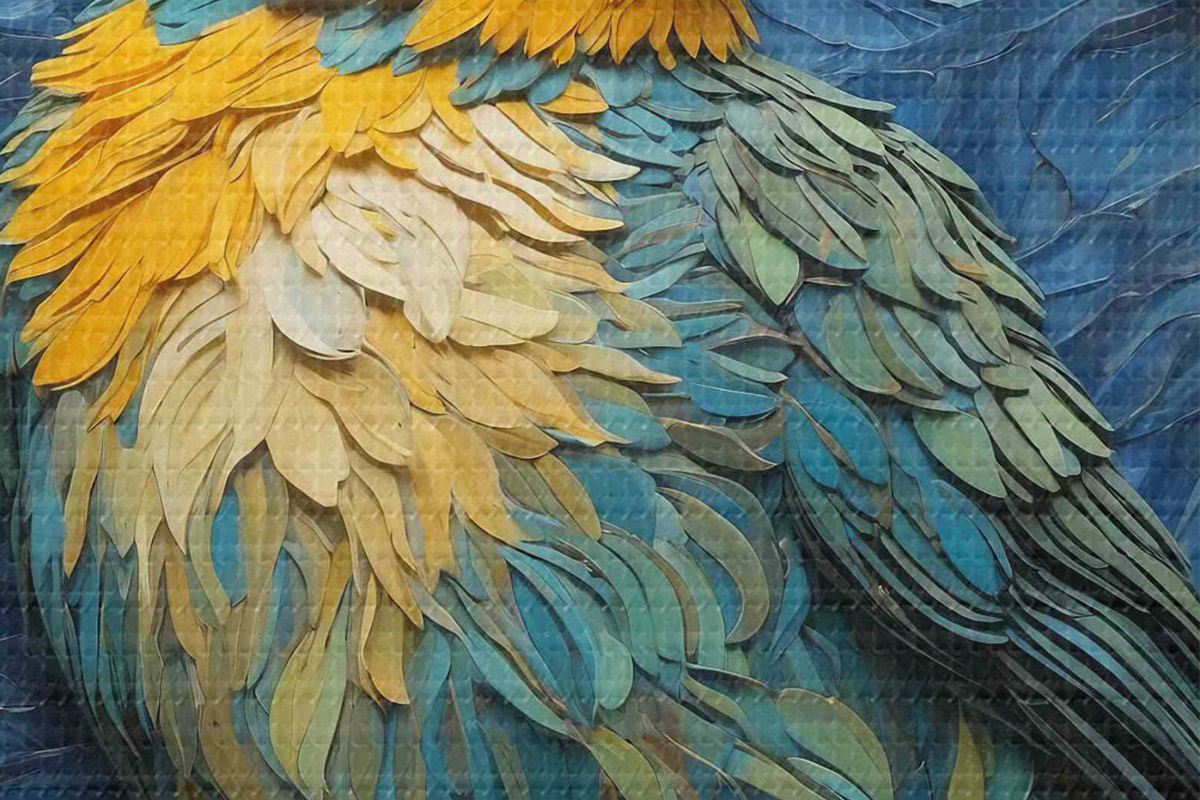 Smalkais diegu pinums uz šī audekla atgādina profesionālu mākslinieku audeklu virsmu.