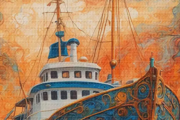 Attēls Peldošs kuģis uz fantastisku debesu fona Nr r36443