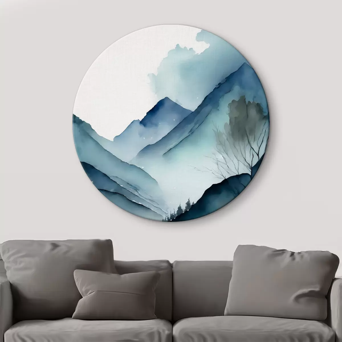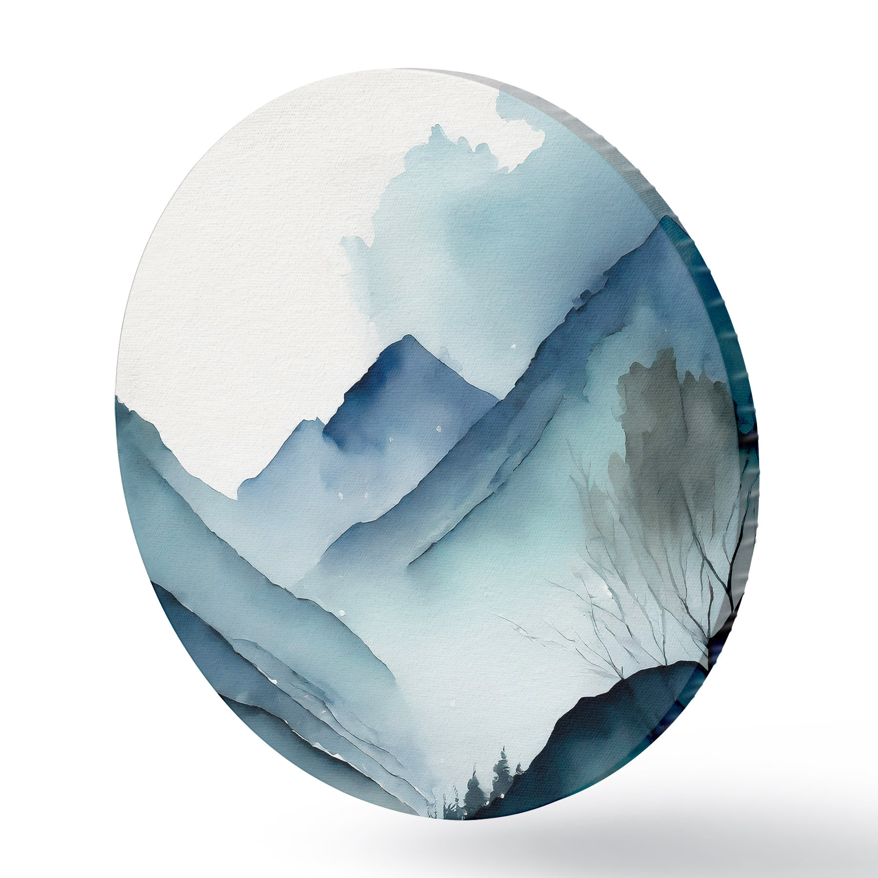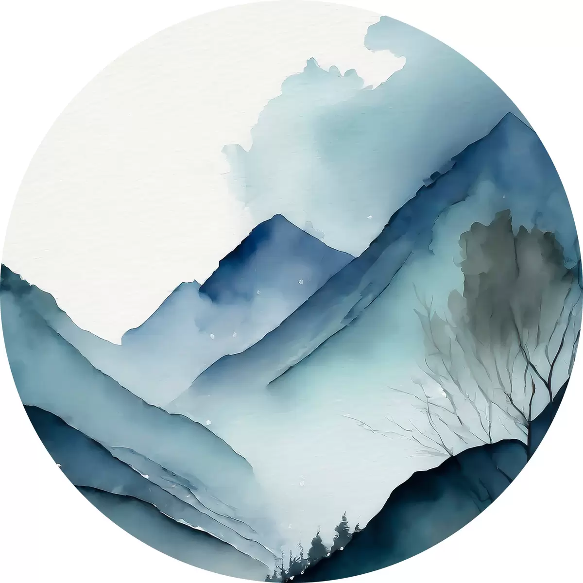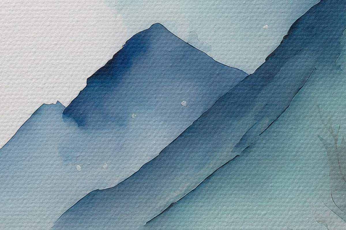 Attēls Akvarelis Abstrakta kalnu ainava, pelēkas un akvamarīna krāsas Nr r36495