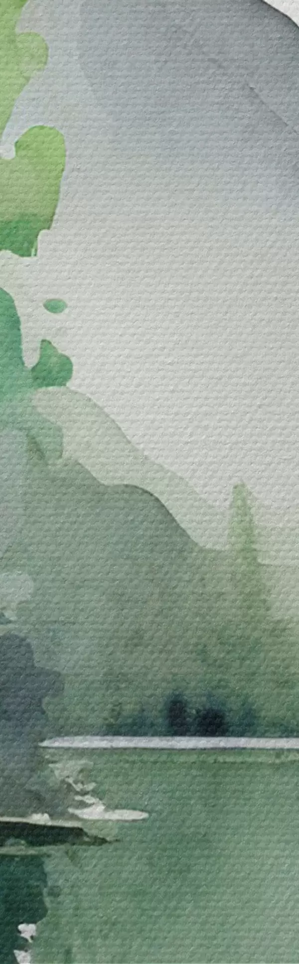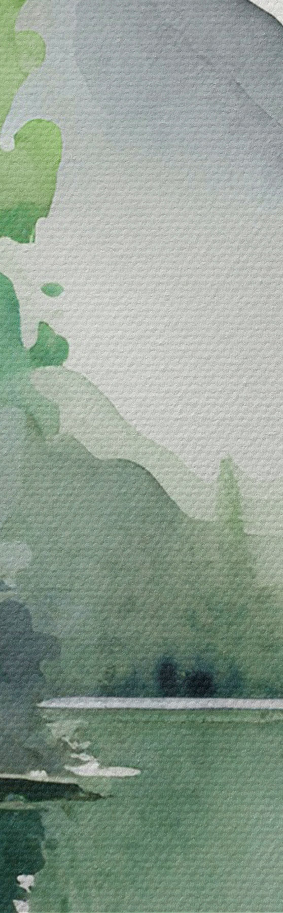 Attēls Akvareļu ainava ezera un meža, pavasaris, dabiski zaļas, maigas krāsas Nr r36503