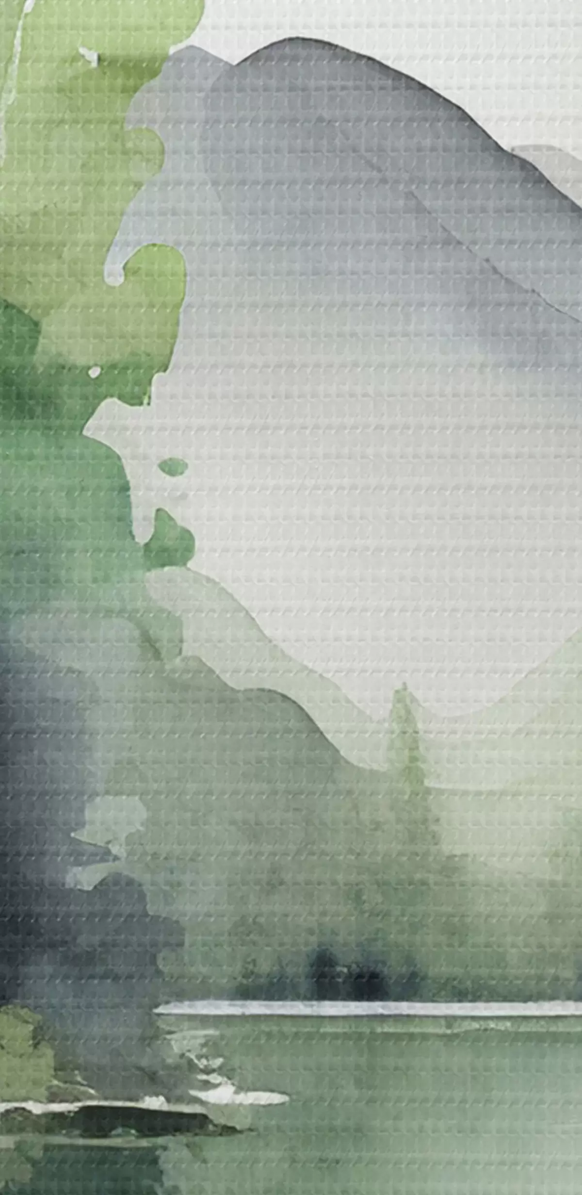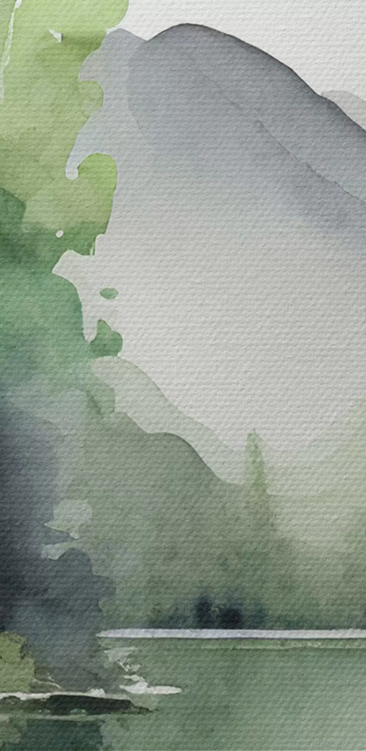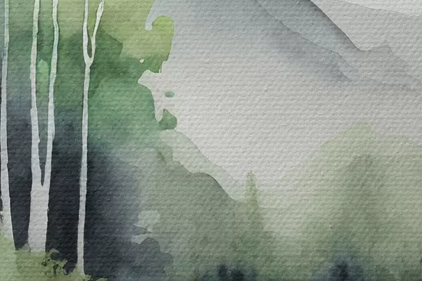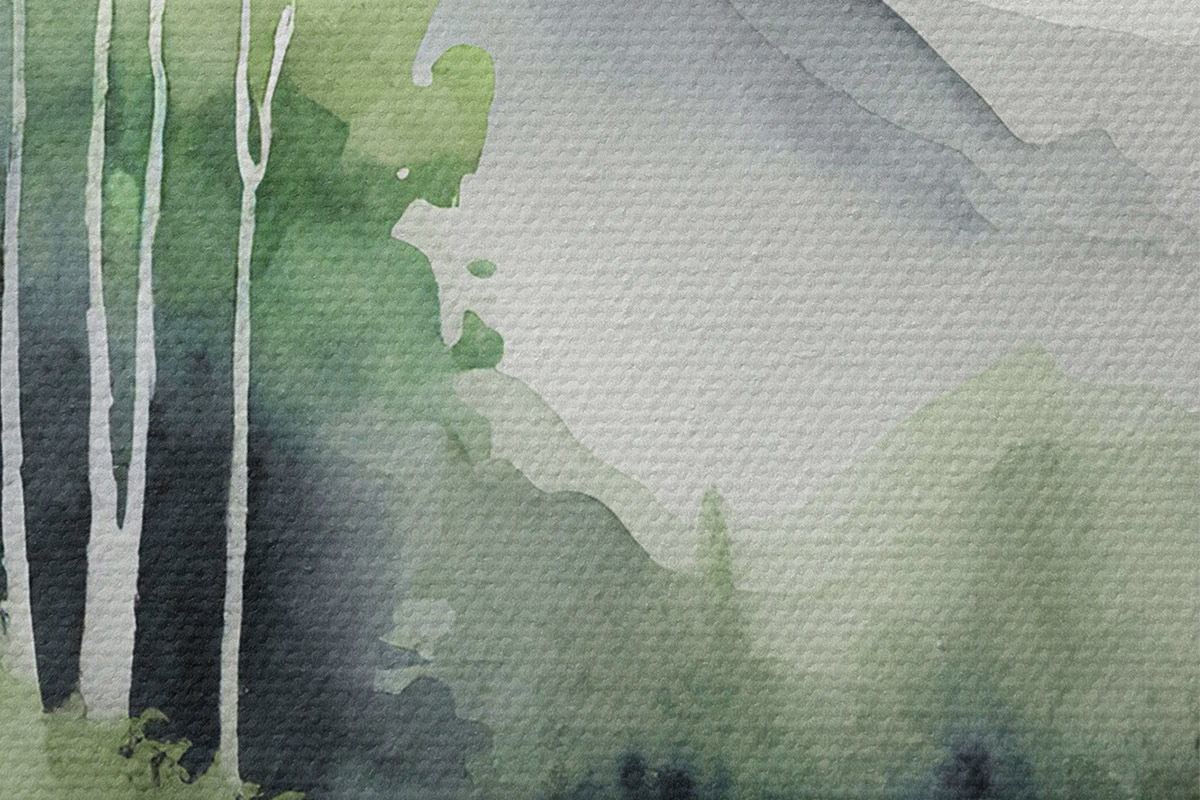 Attēls Akvareļu ainava ezera un meža, pavasaris, dabiski zaļas, maigas krāsas Nr r36503