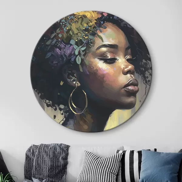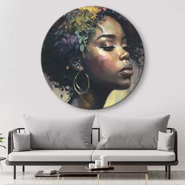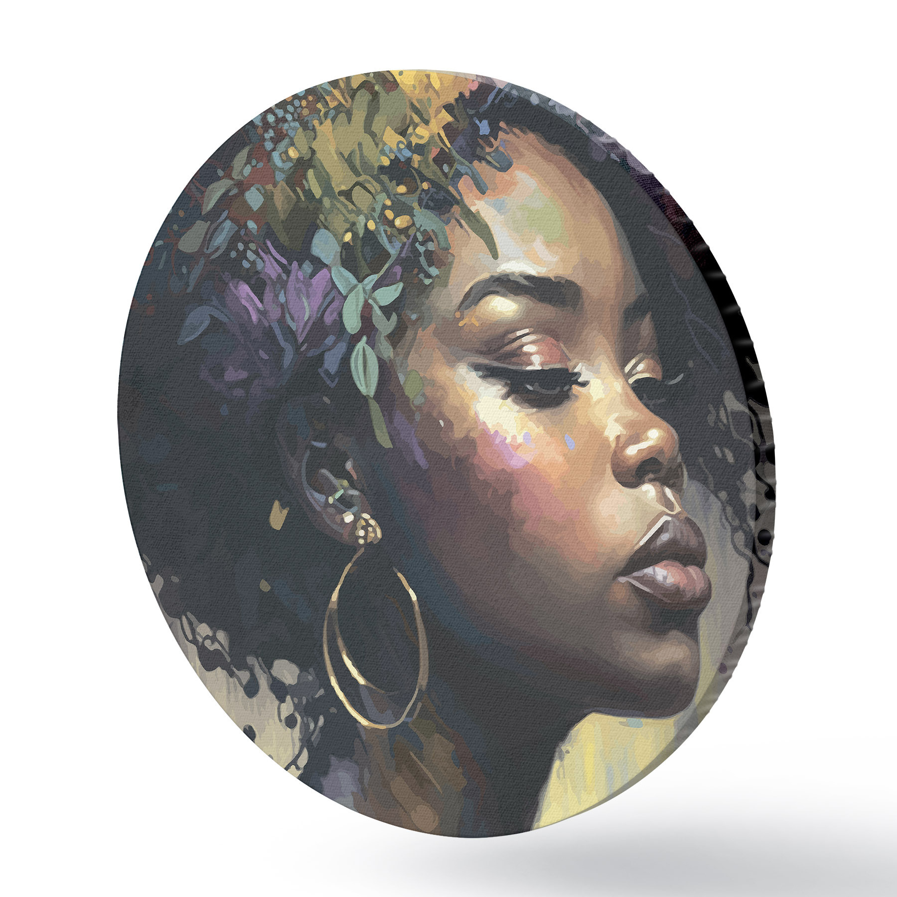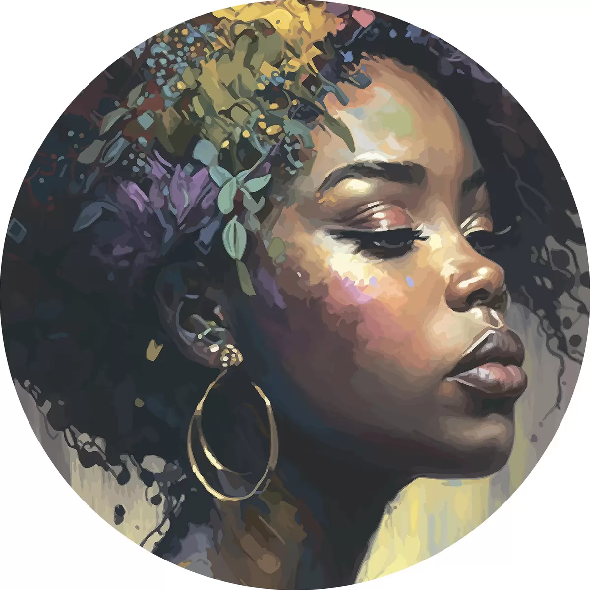 Apaļas gleznas Skaista melna sieviete ar krāsotiem matiem r36577