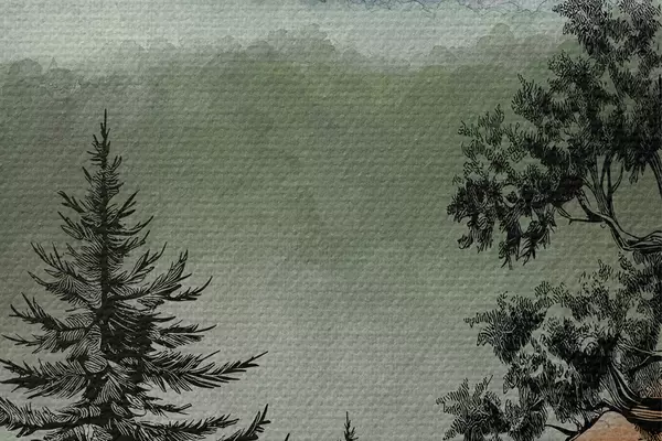 Attēls Akvarelis ar kalniem un kokiem Nr r36604