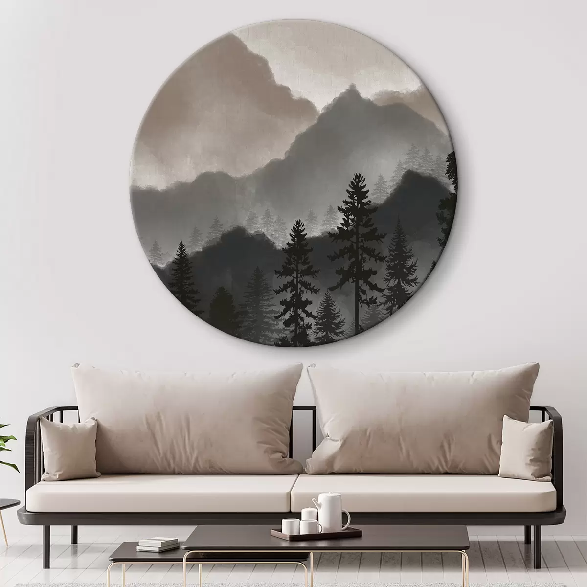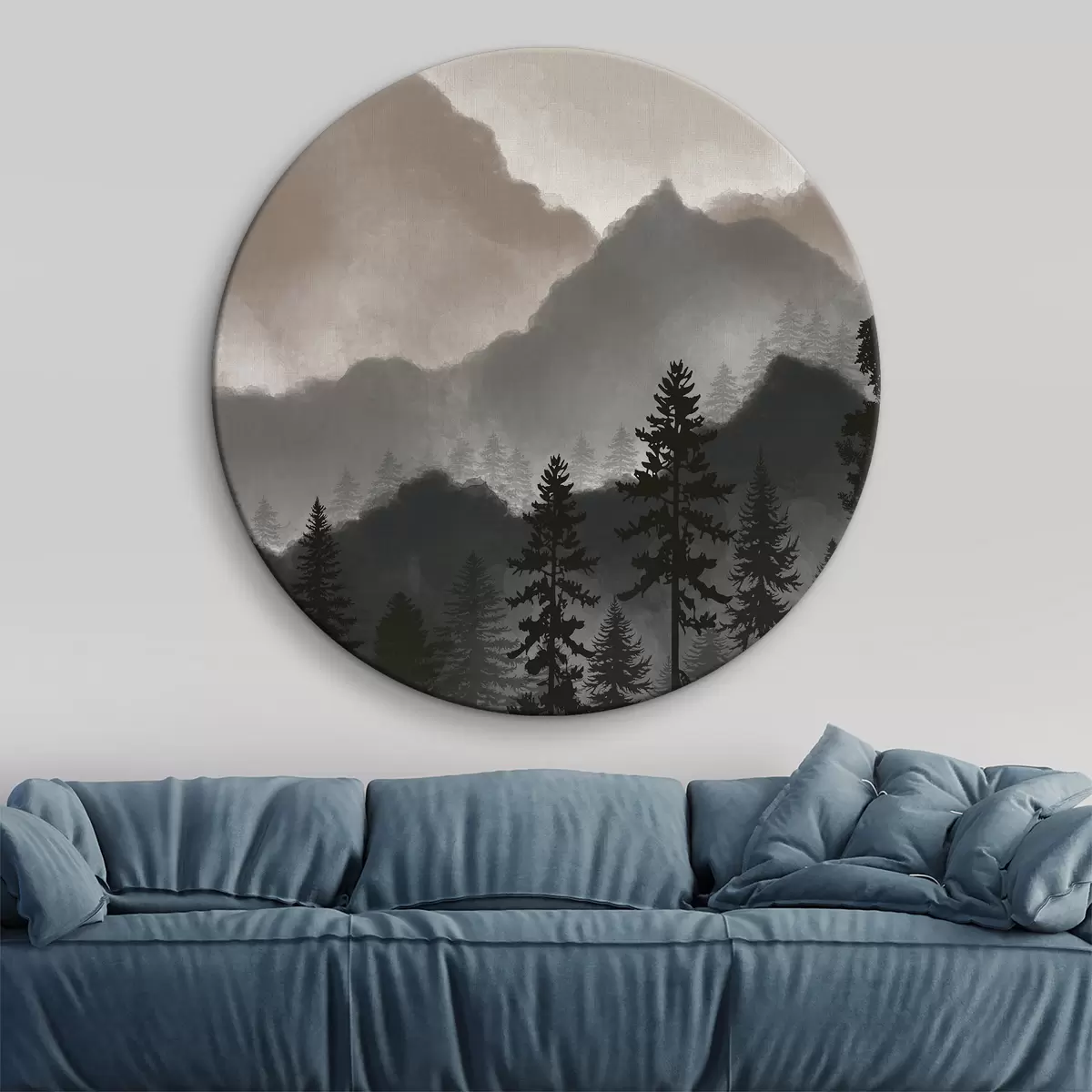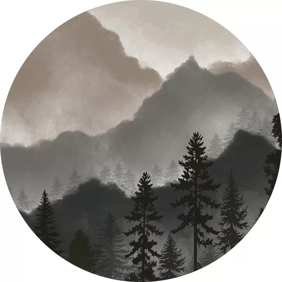 Apaļas gleznas Abstraktie akvareļu kalni r36607v1
