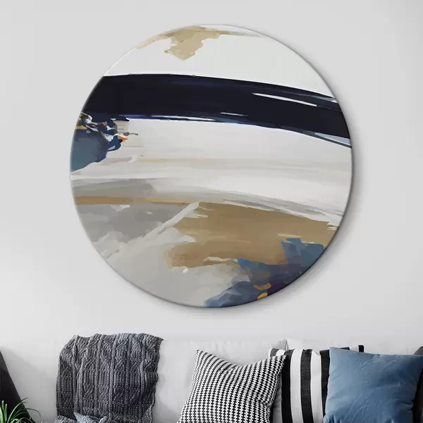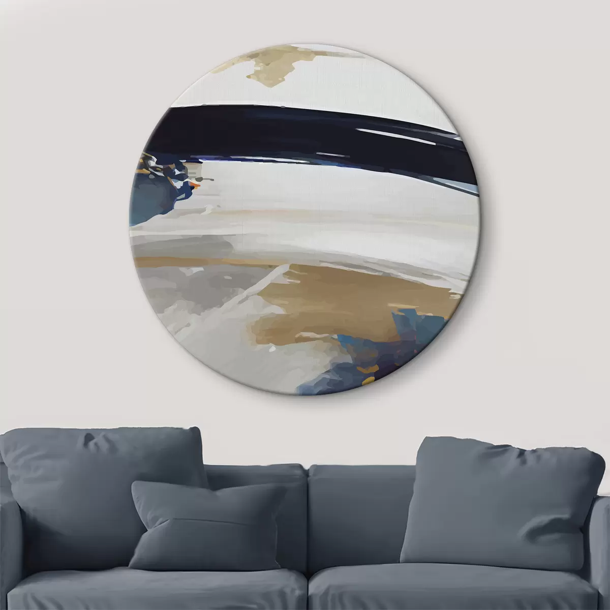 Apaļas gleznas Izteiksmīga abstrakcija pelēkā un zilā krāsā r36620