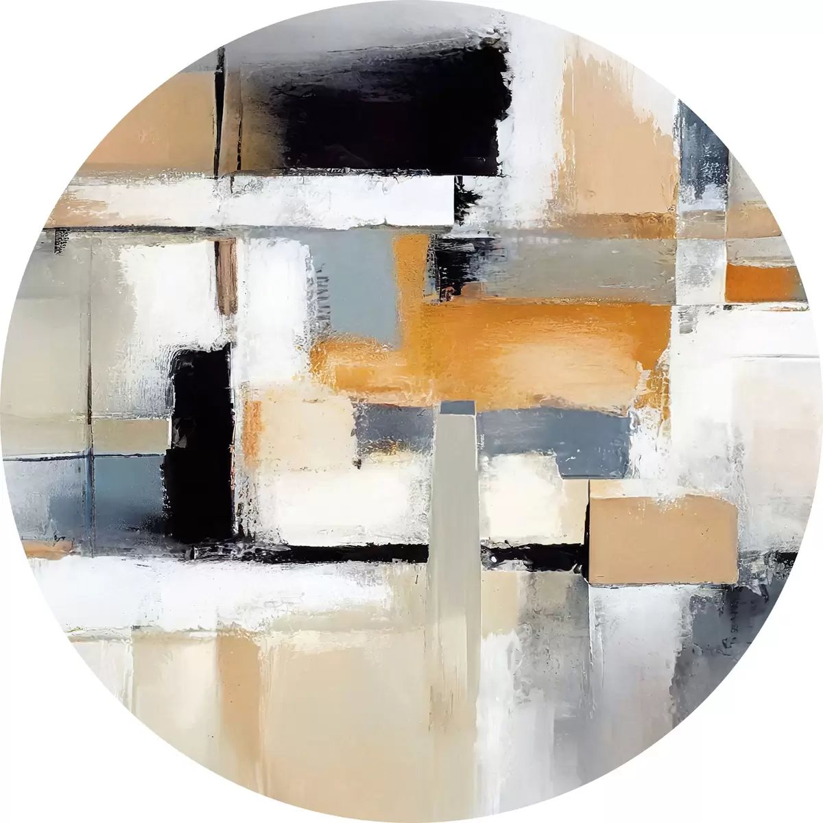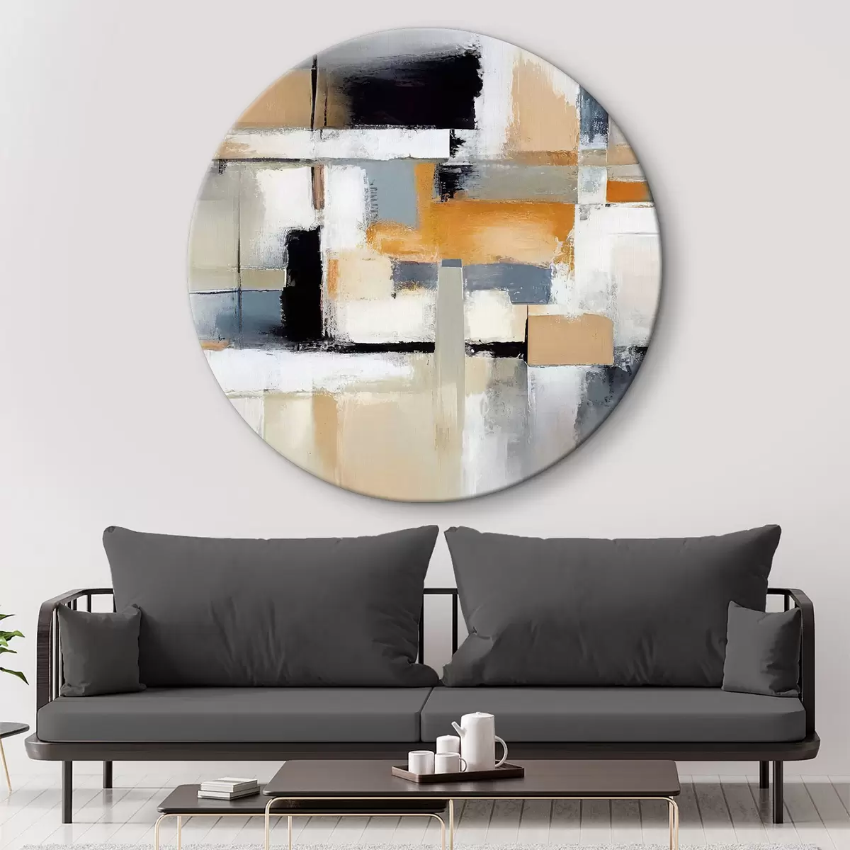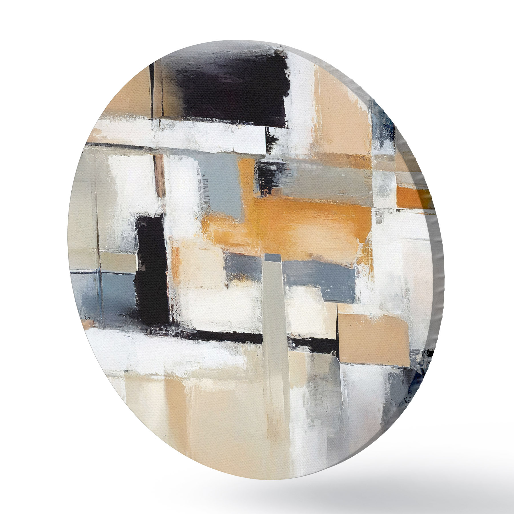Apaļas gleznas Bēšs-pelēka abstrakcija ar oranžu un baltu krāsu r36624