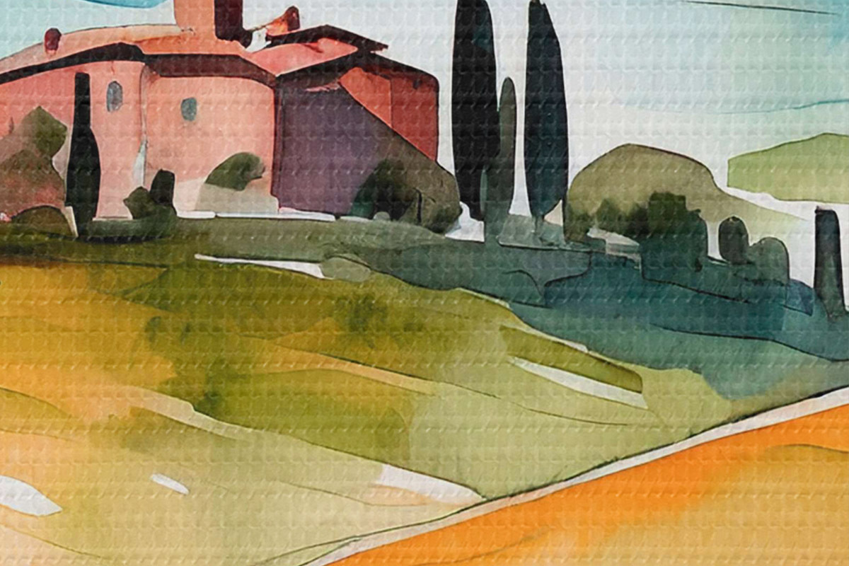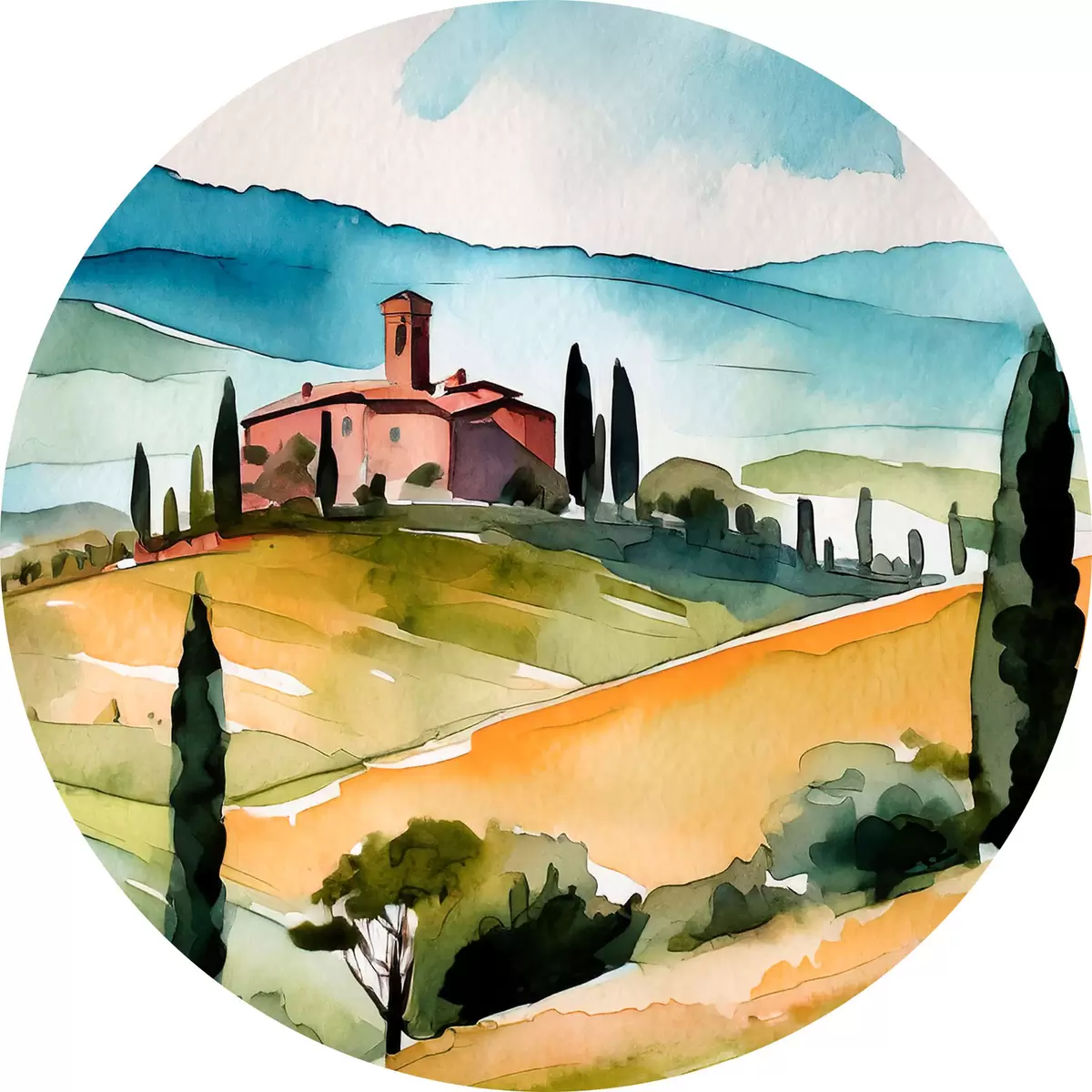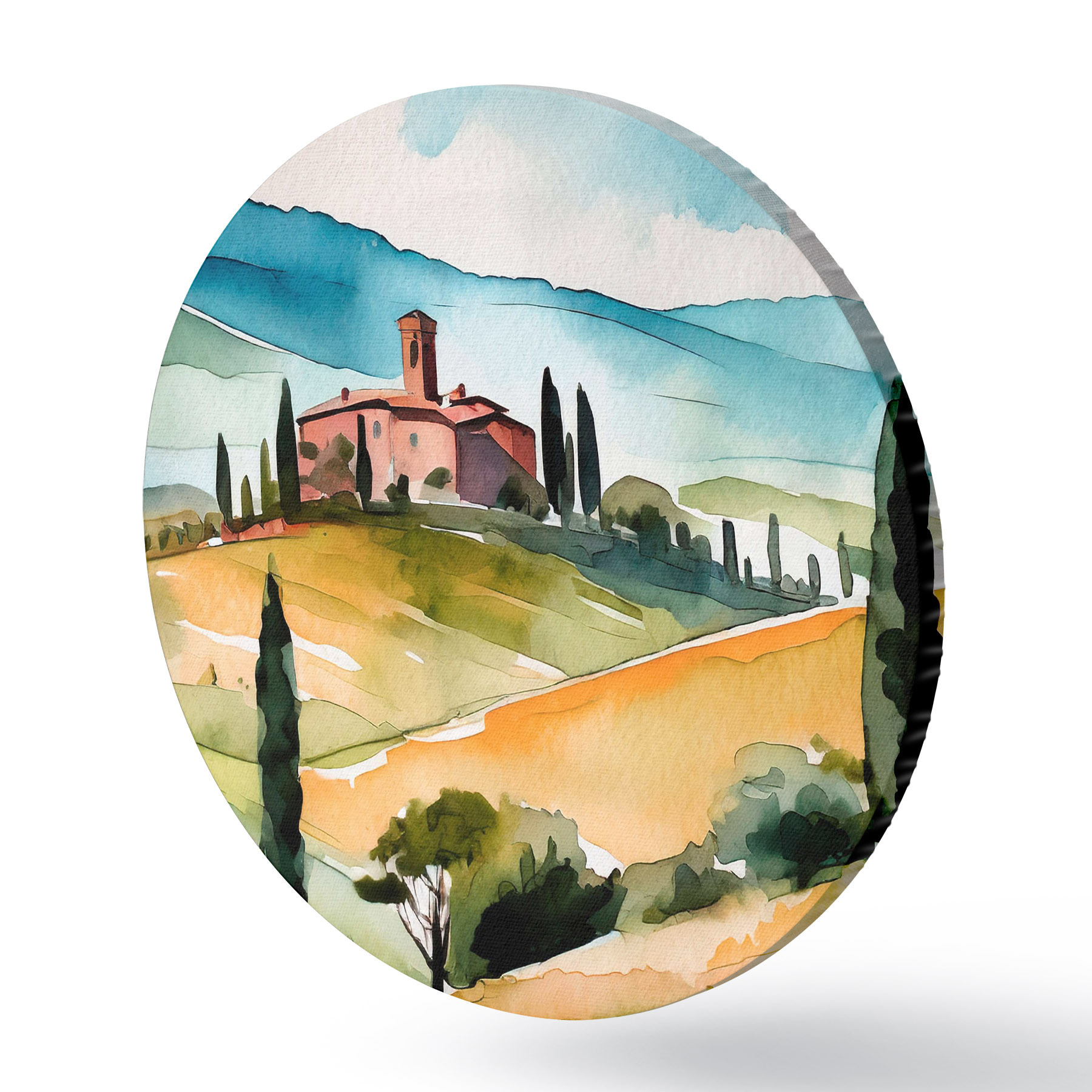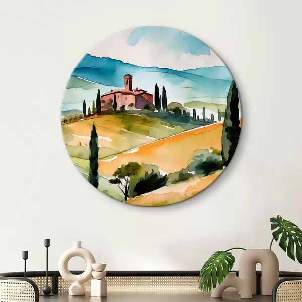 Apaļas gleznas Itālijas ainava, akvarelis, Toskāna r36683
