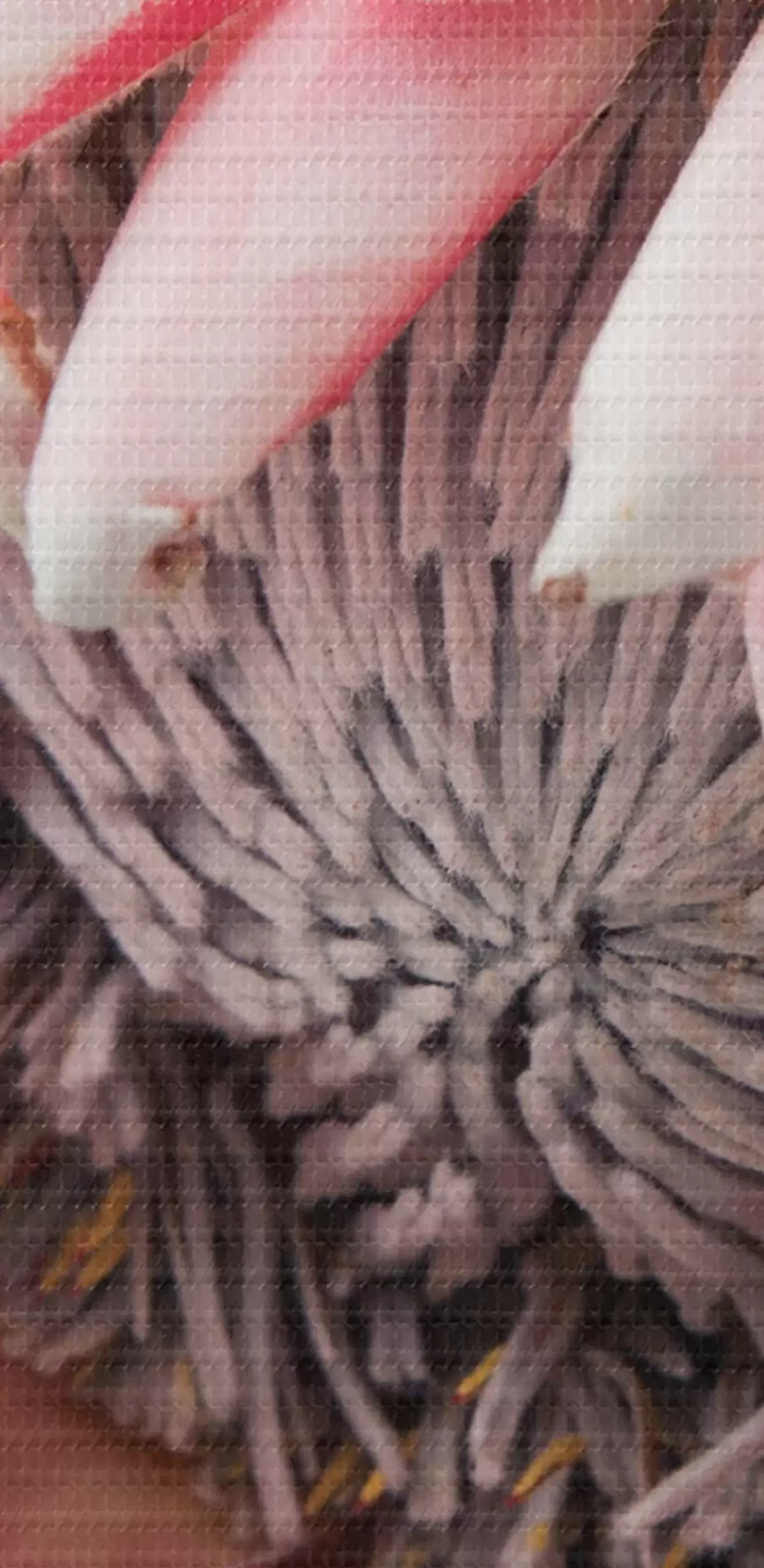 Smalkais diegu pinums uz šī audekla atgādina profesionālu mākslinieku audeklu virsmu.