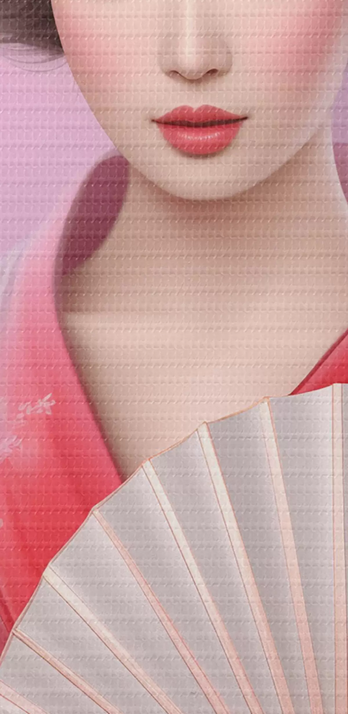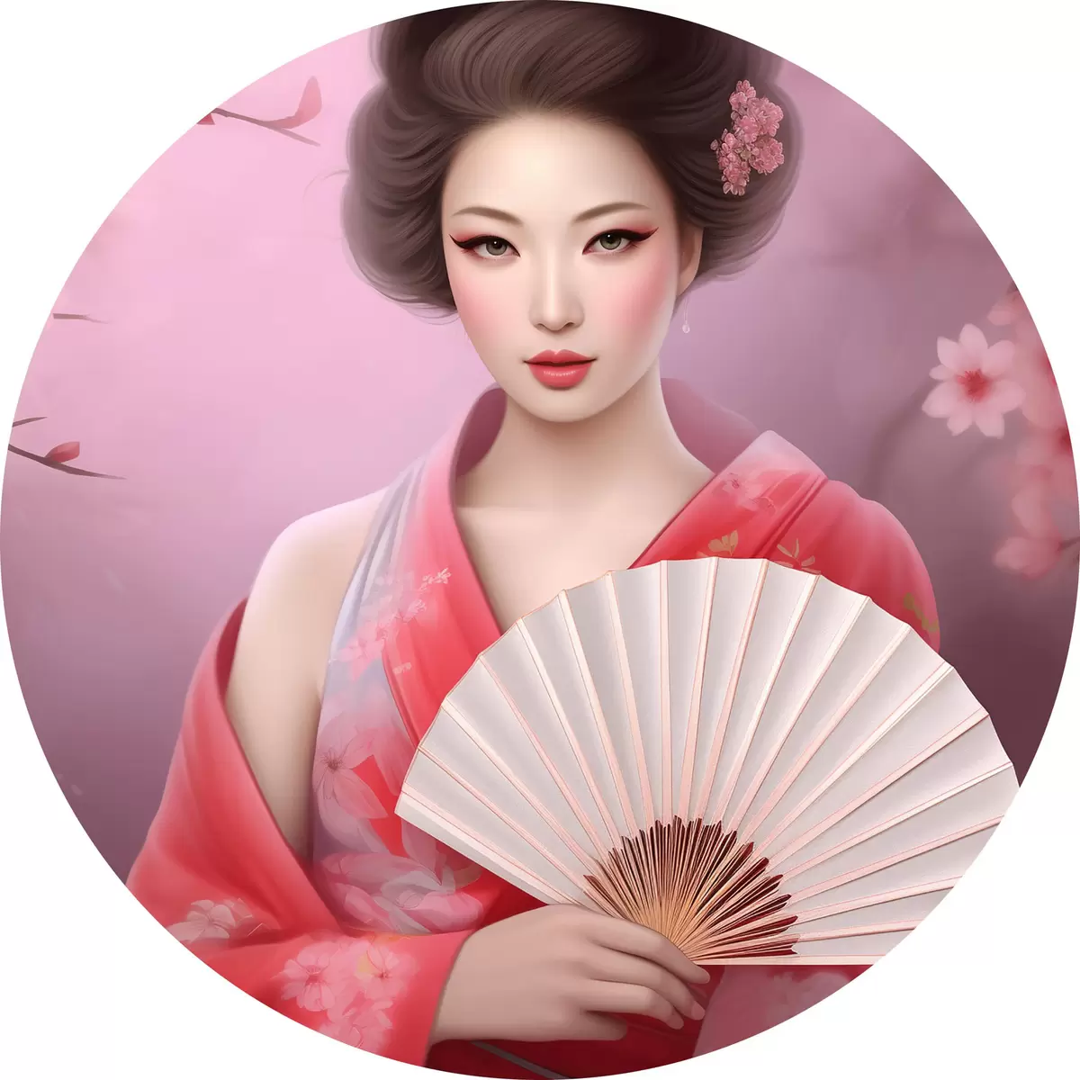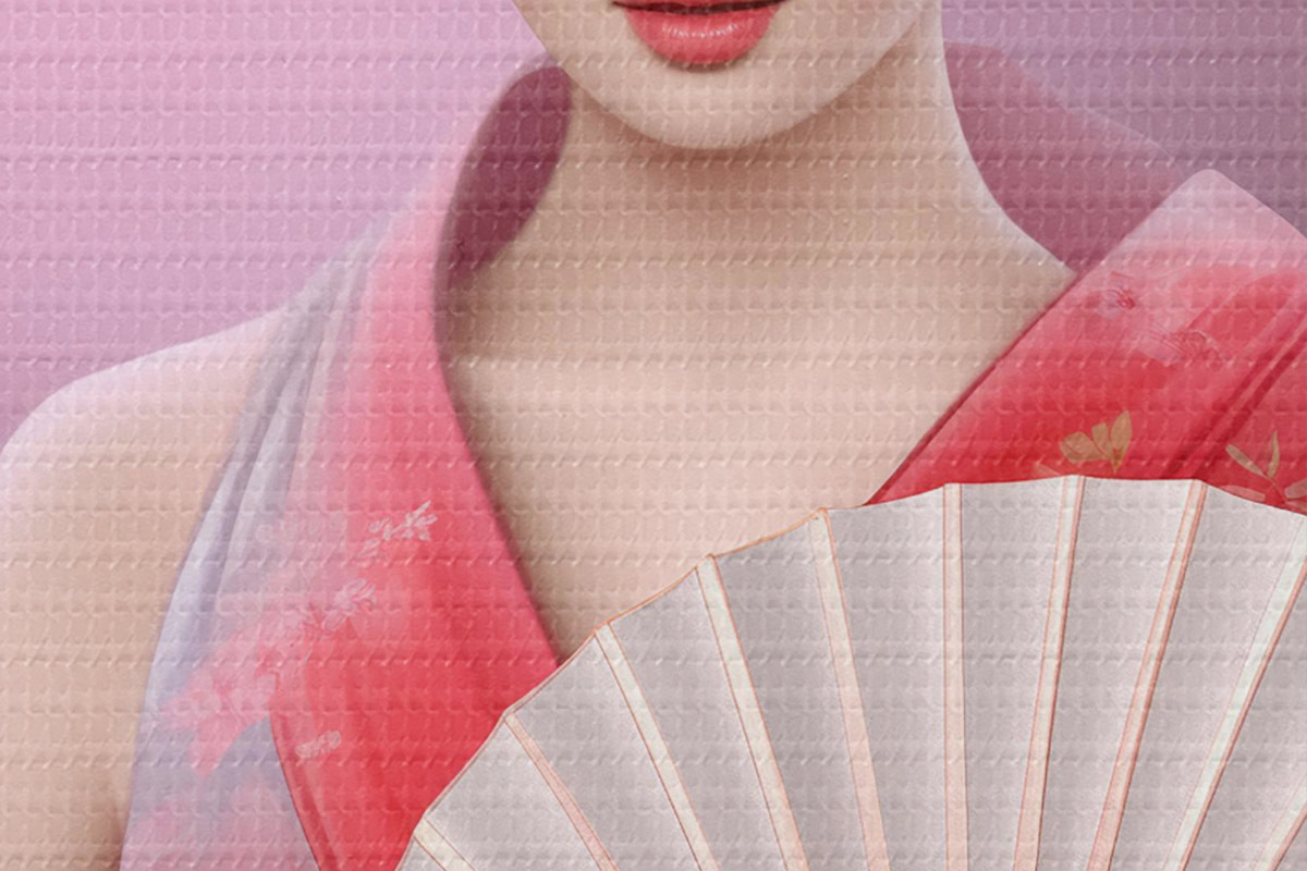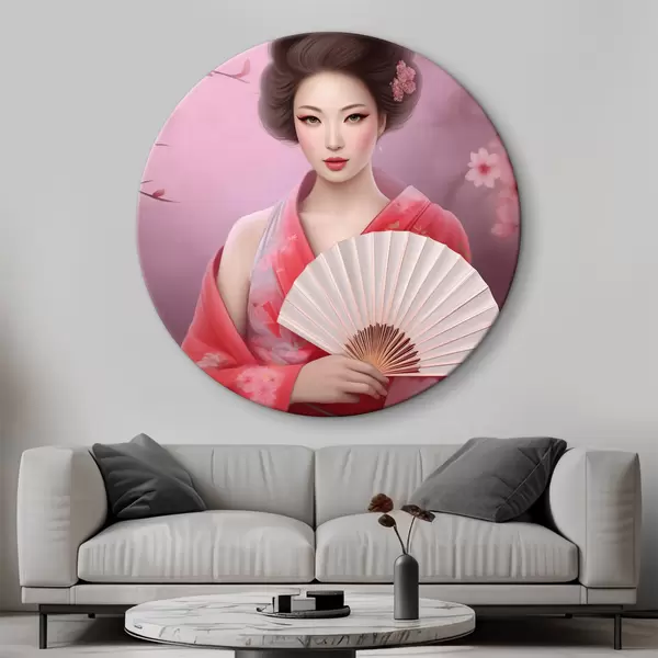 Attēls Sieviete kimono, kas tur vēdekli Nr r36804