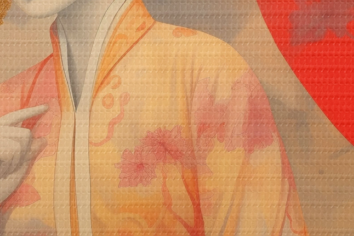 Lai izstieptu audeklu uz nestuvēm, nebojājot attēlu, mēs izmantojam spoguļattēlu.