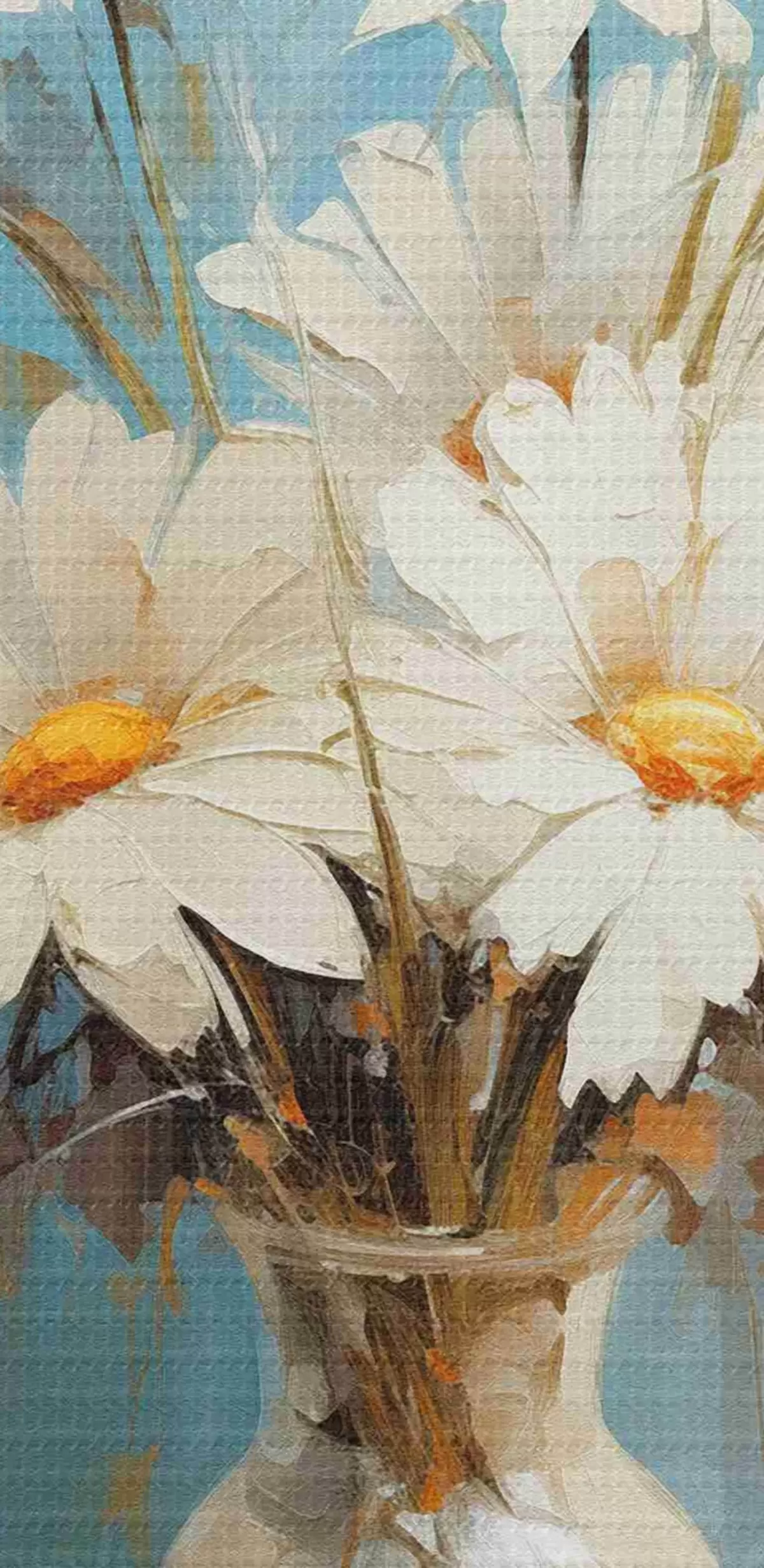 Smalkais diegu pinums uz šī audekla atgādina profesionālu mākslinieku audeklu virsmu.
