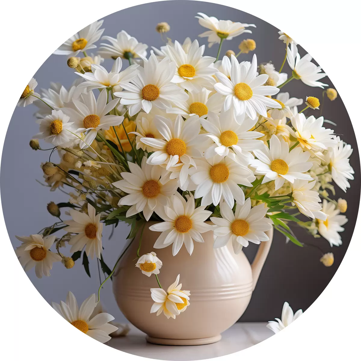 Apaļas gleznas Liela vāze ar margrietiņu pušķi r36813