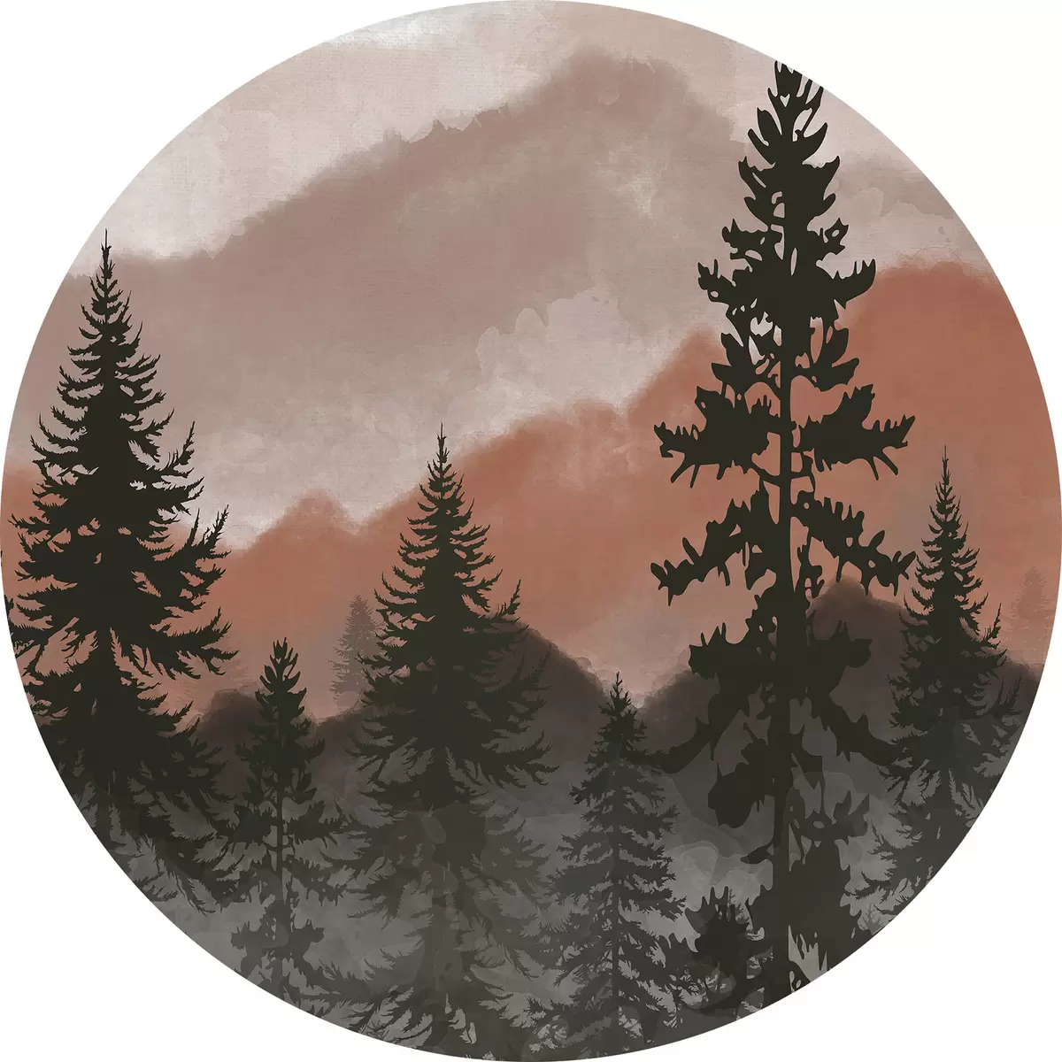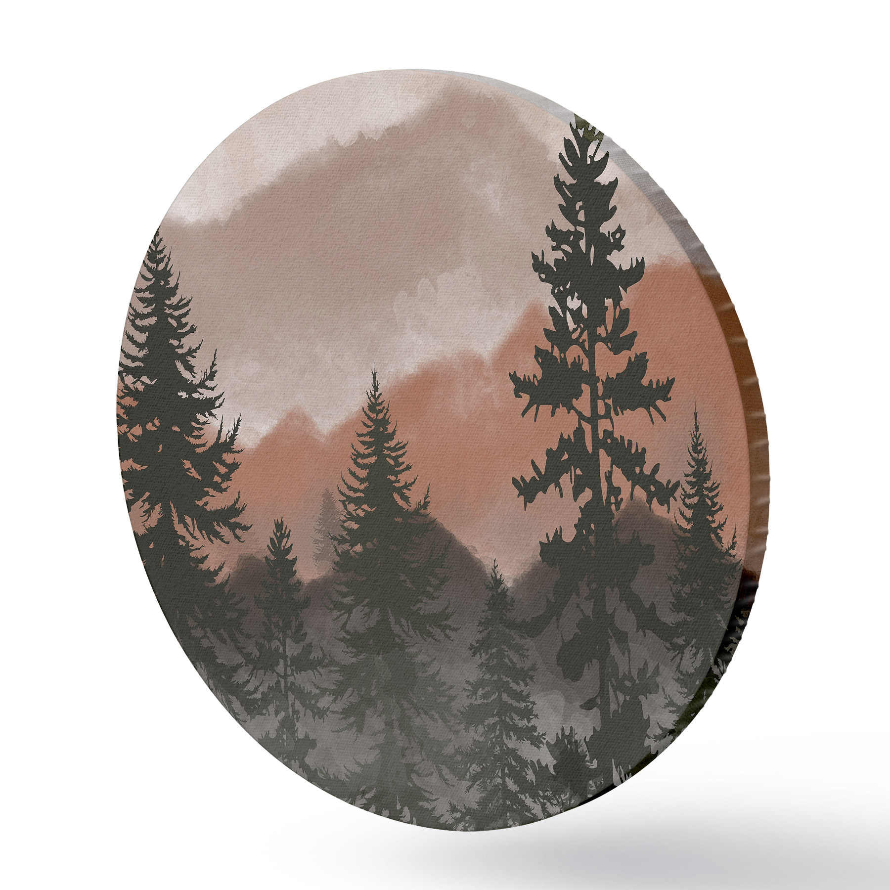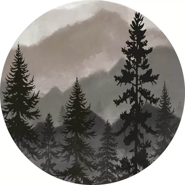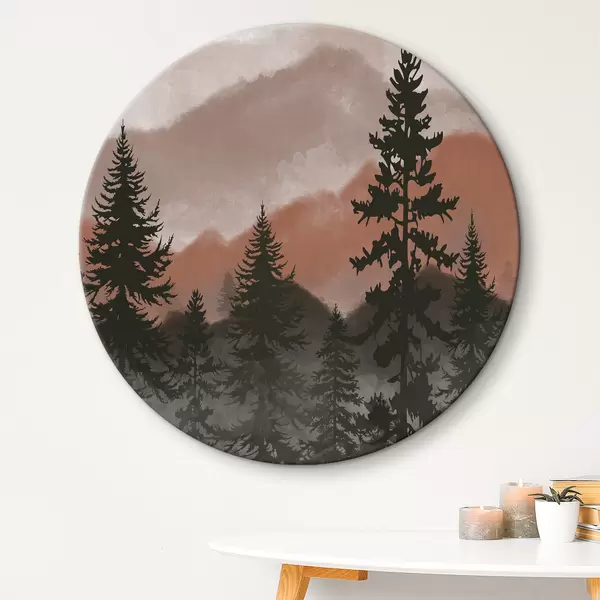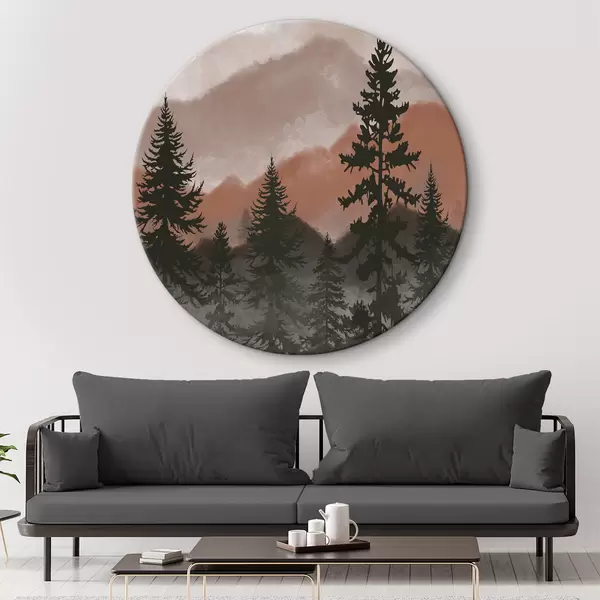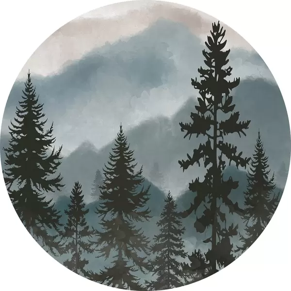 Apaļas gleznas Kalnu ainava ar eglēm akvarelī r37017v2