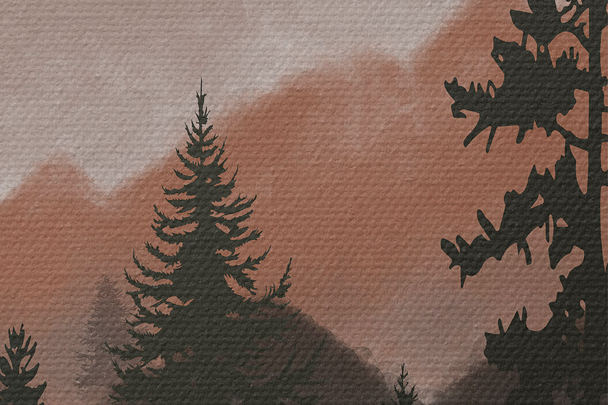 Attēls Kalnu ainava ar eglēm akvarelī Nr r37017v2