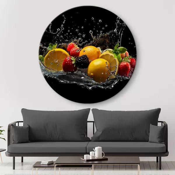 Apaļas gleznas Augļi ūdens šļakatās r37044