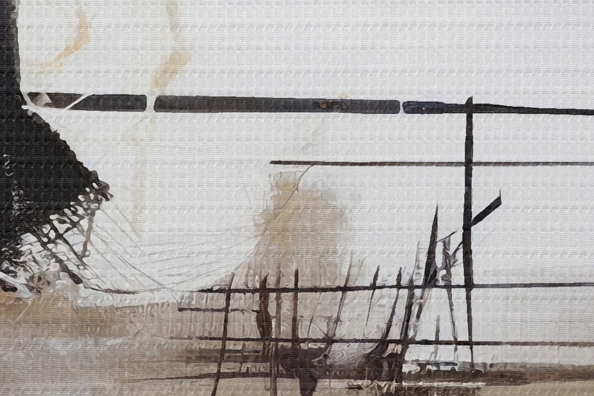 Smalkais diegu pinums uz šī audekla atgādina profesionālu mākslinieku audeklu virsmu.