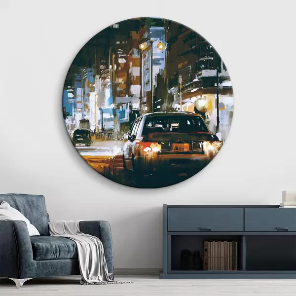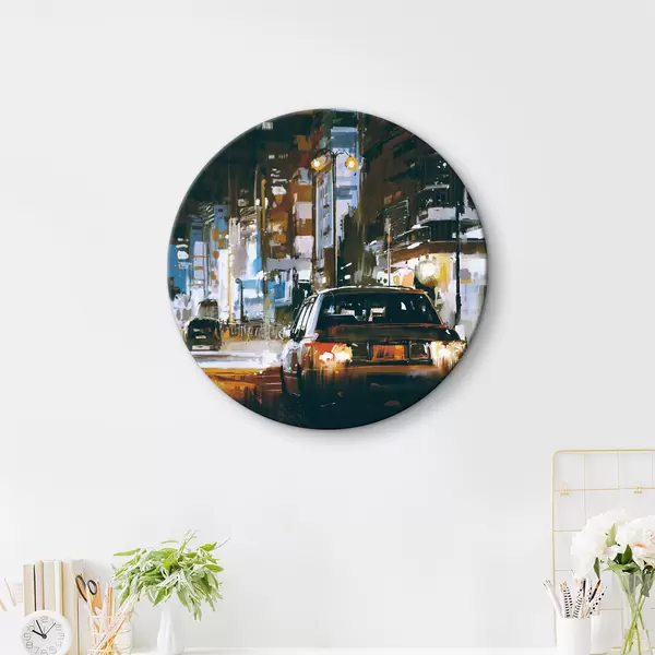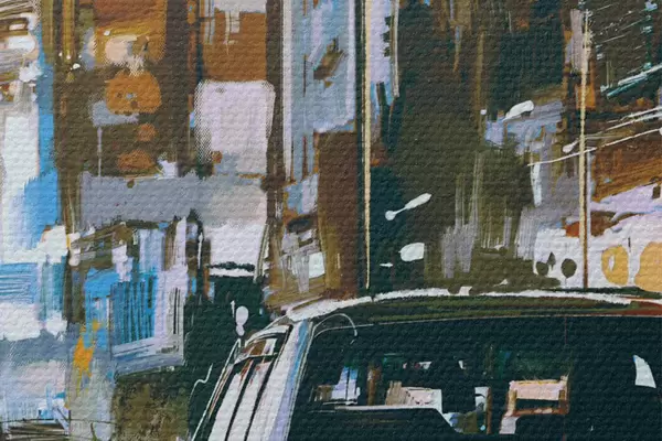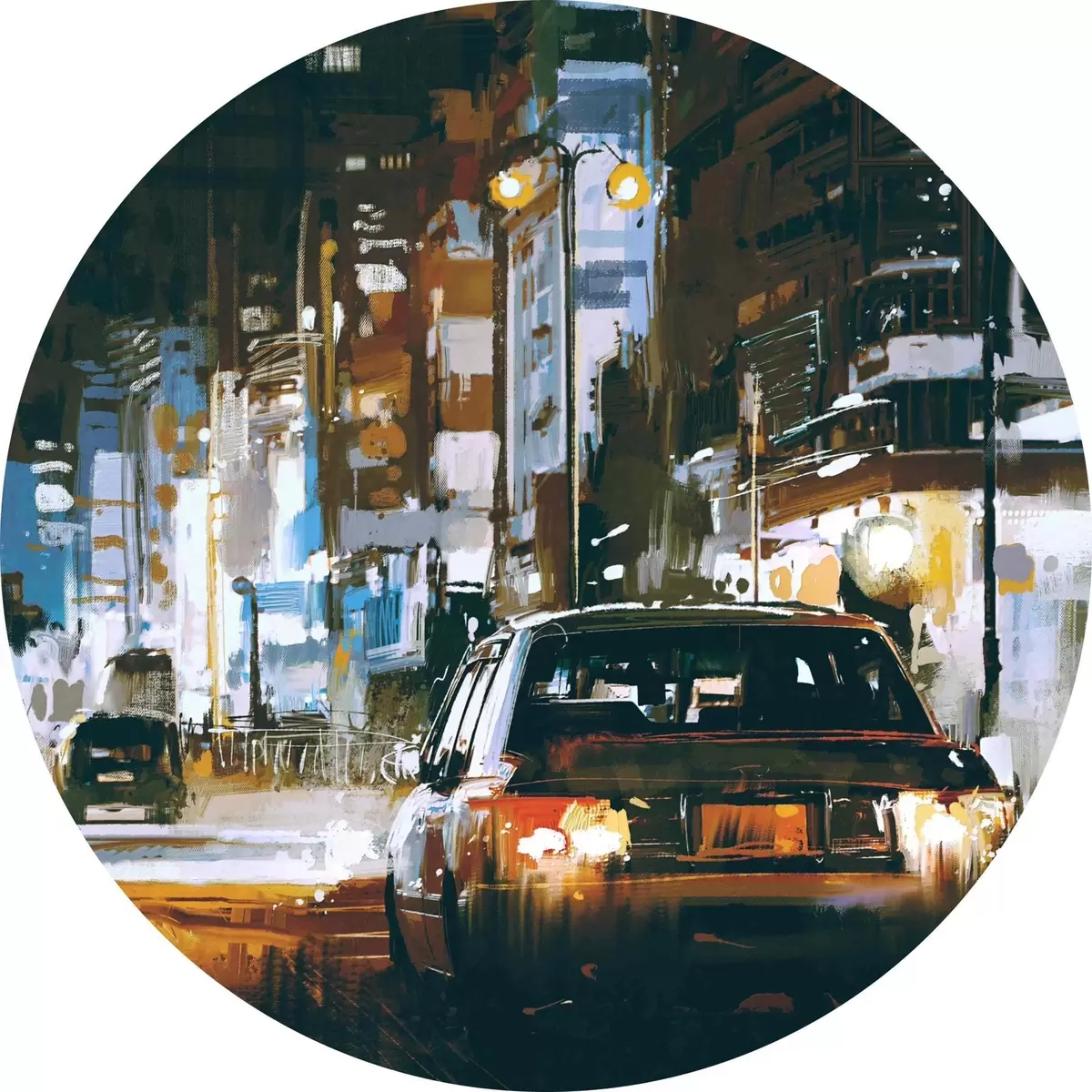 Attēls Pilsētas ainava un automašīna naktī Nr r37085