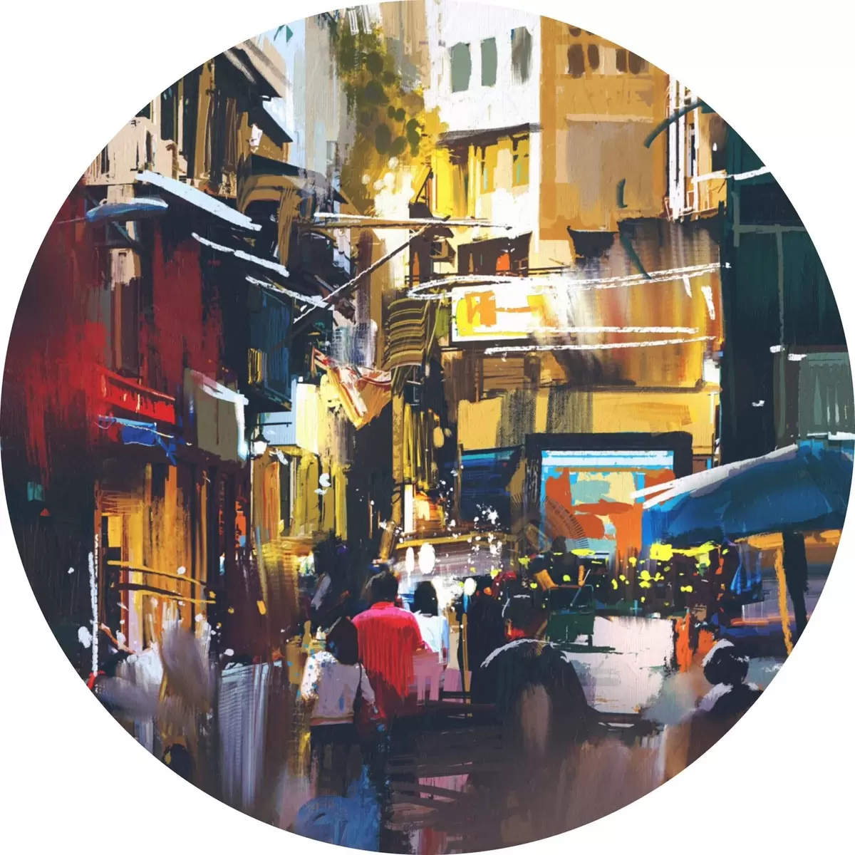 Attēls Ielas ar ēkām un ejošiem cilvēkiem Nr r37096