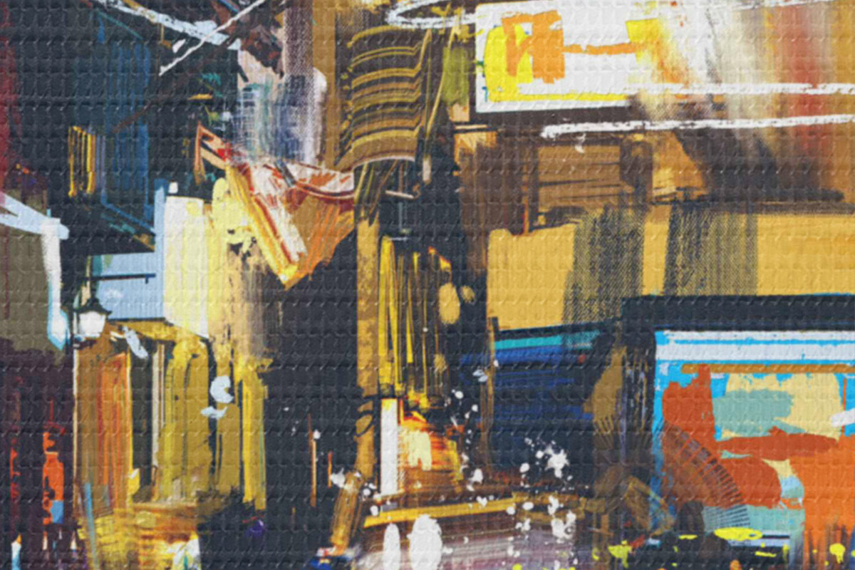 Smalkais diegu pinums uz šī audekla atgādina profesionālu mākslinieku audeklu virsmu.