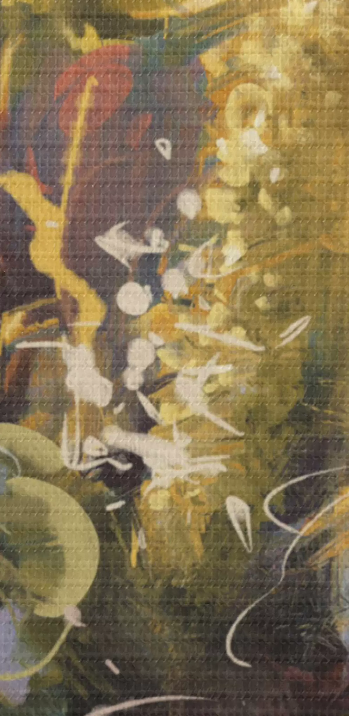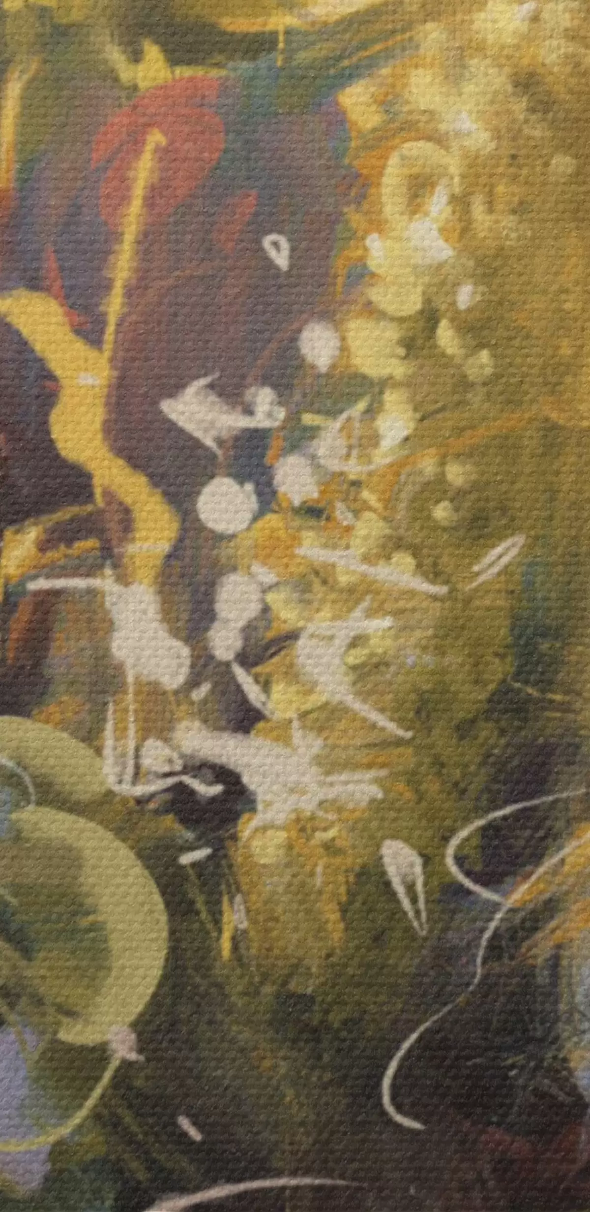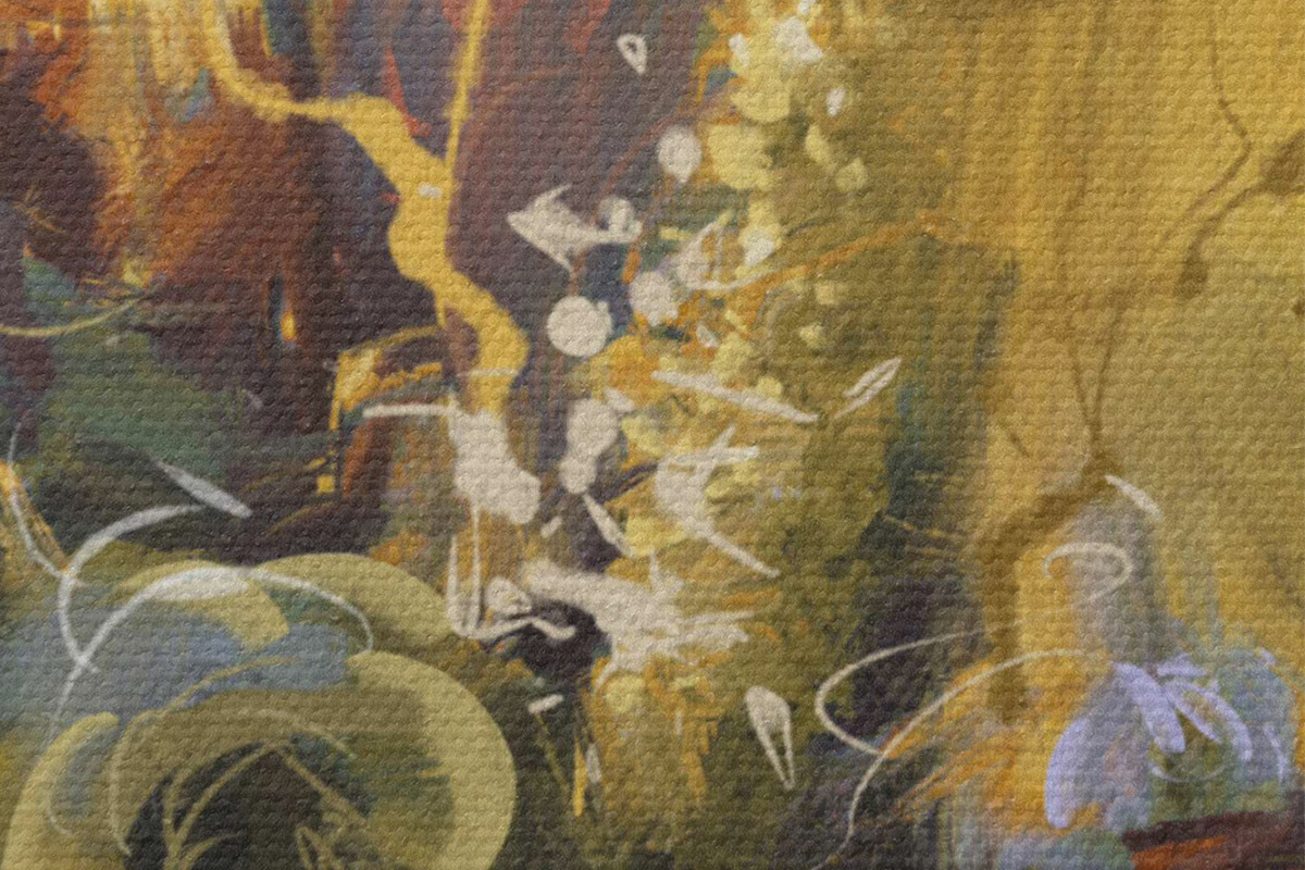 Smalkais diegu pinums uz šī audekla atgādina profesionālu mākslinieku audeklu virsmu.