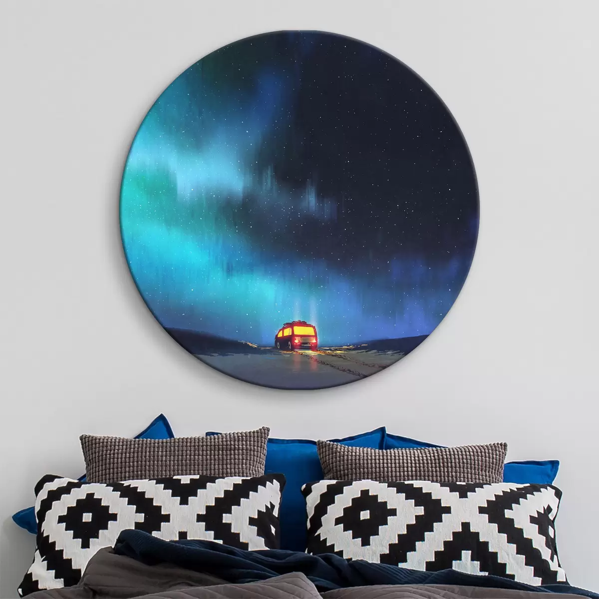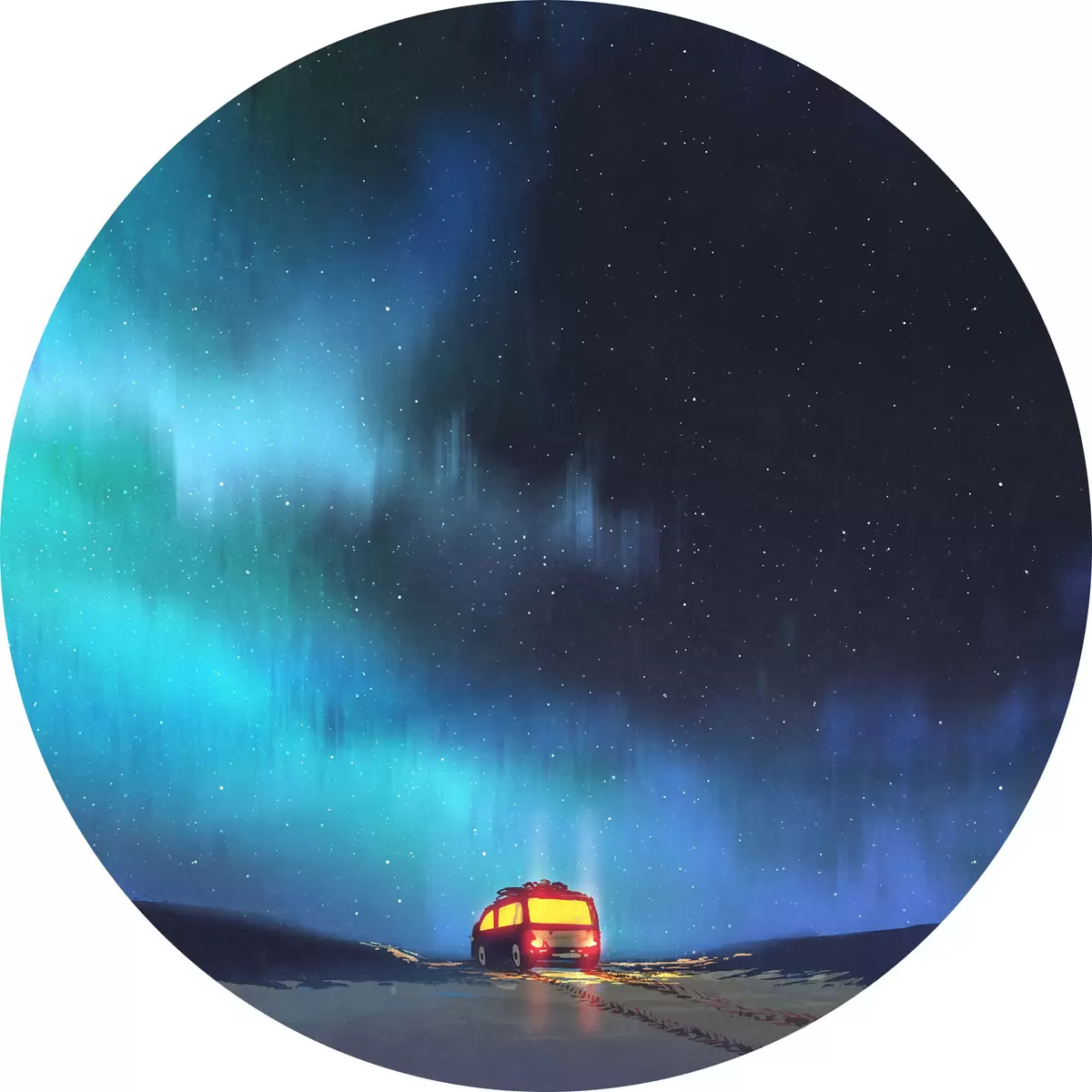 Attēls Autobuss uz sniegota ceļa ar gaismām debesīs Nr r37111