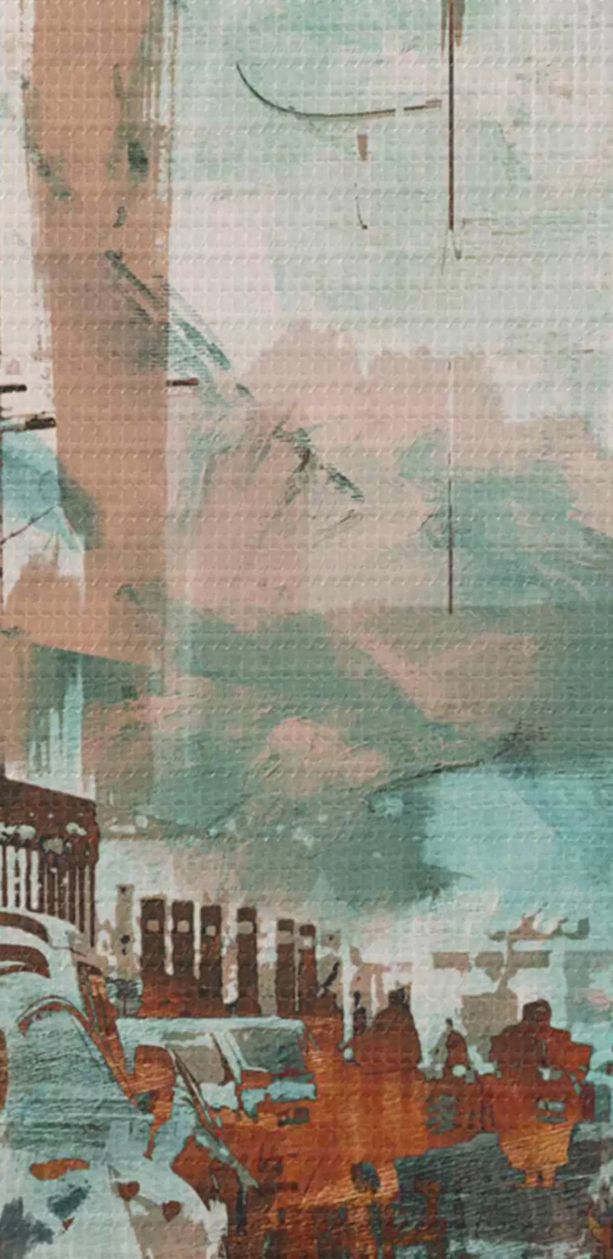 Smalkais diegu pinums uz šī audekla atgādina profesionālu mākslinieku audeklu virsmu.