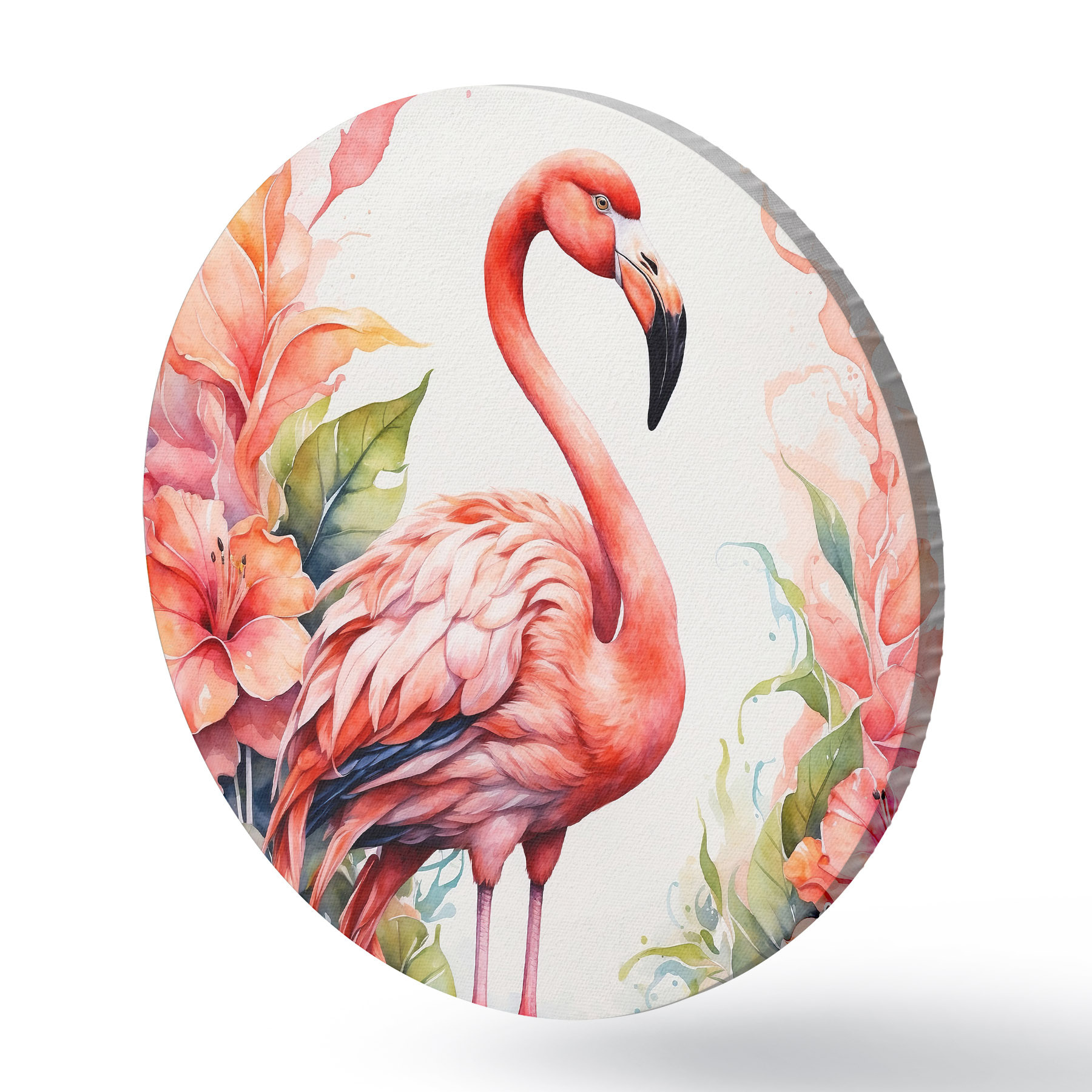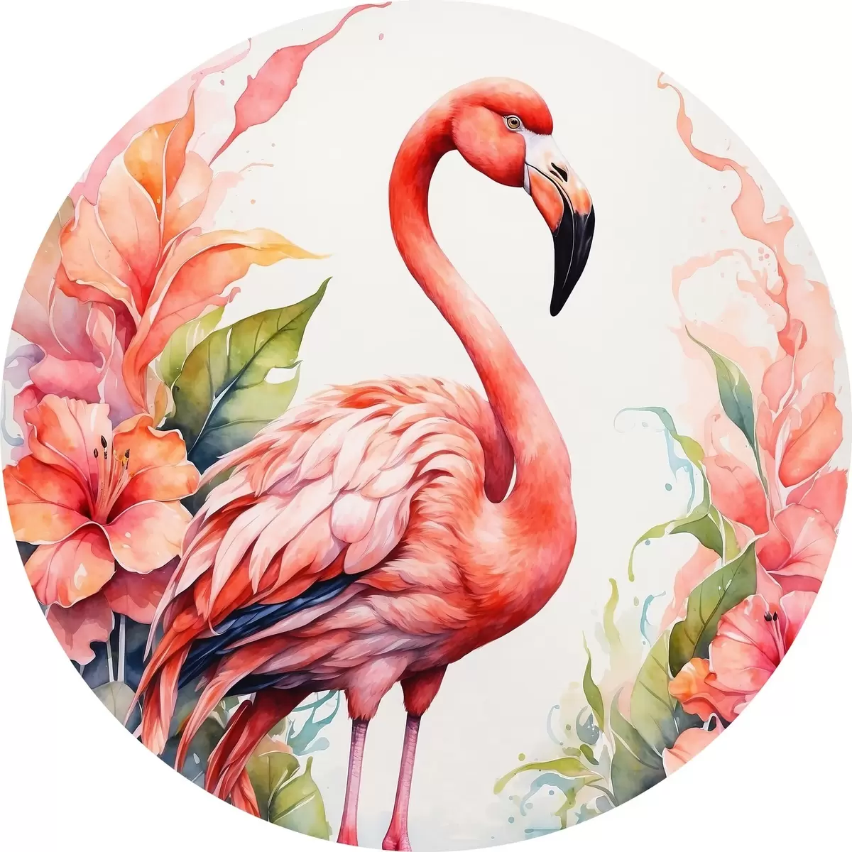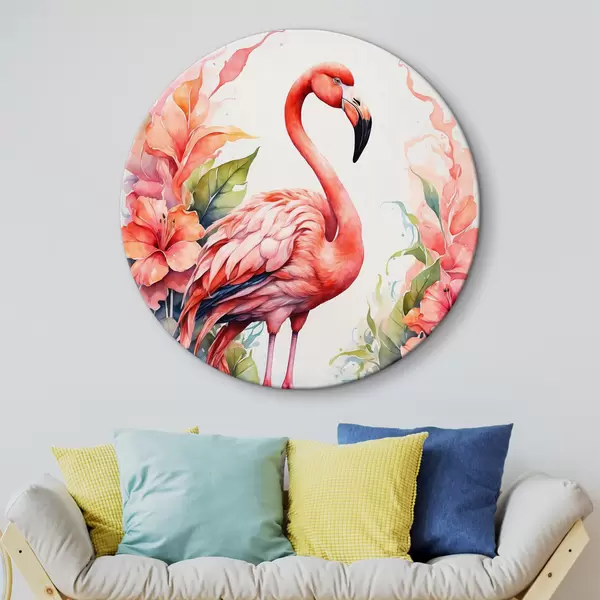 Apaļas gleznas Flamingo ar ziediem akvarelī r37125