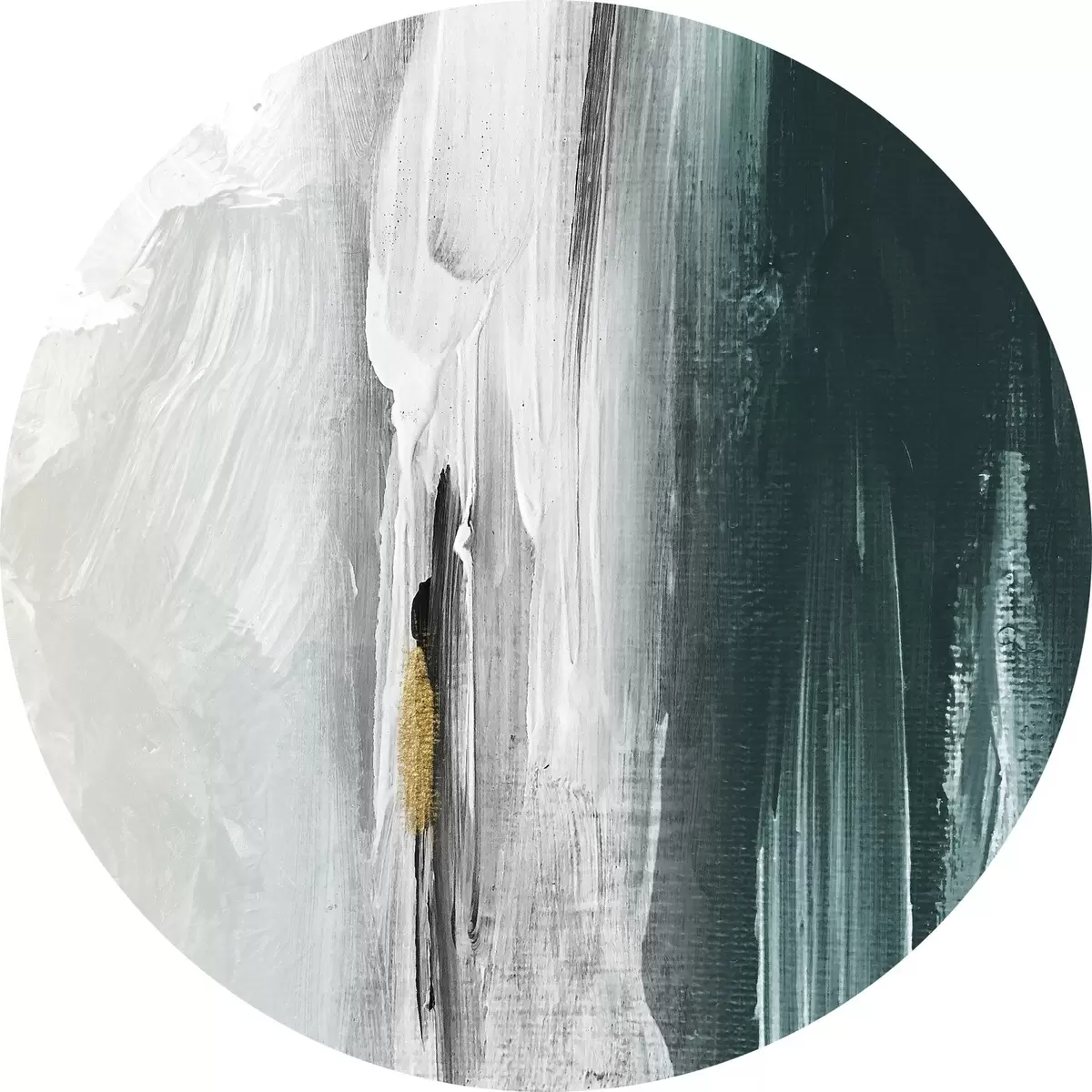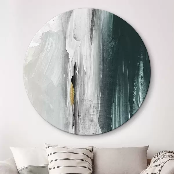 Apaļas gleznas Abstraktā glezniecība ar baltām un zaļām krāsām r37158