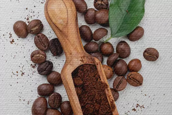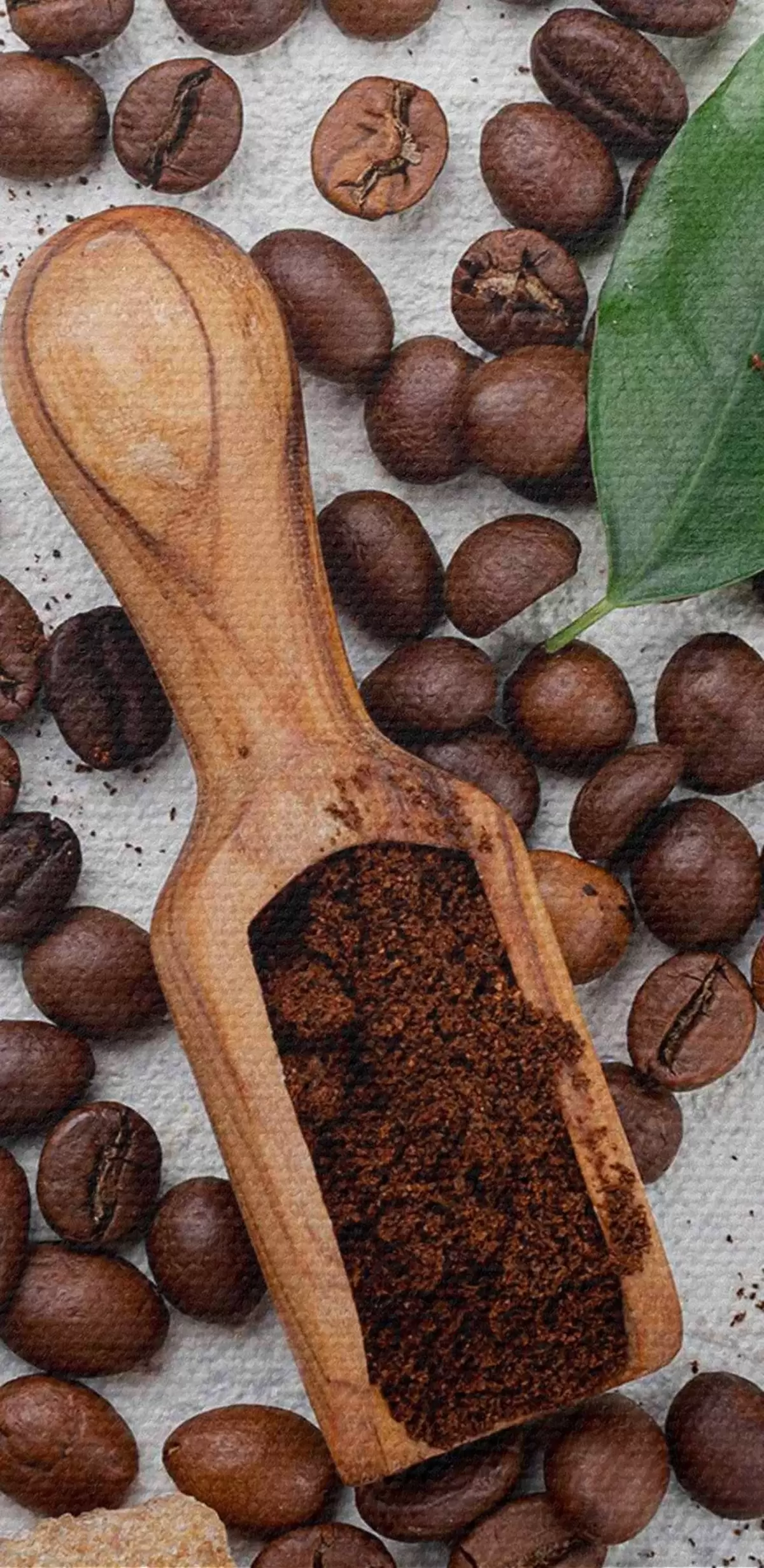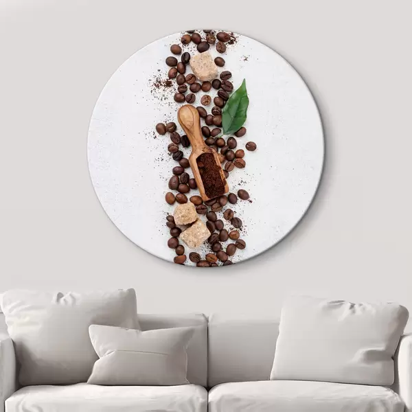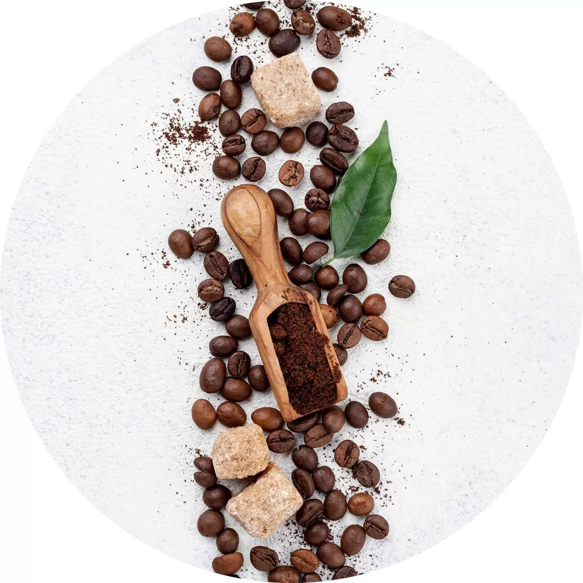 Attēls Karotīte ar kafijas pupiņām un cukuru virsū Nr r37178
