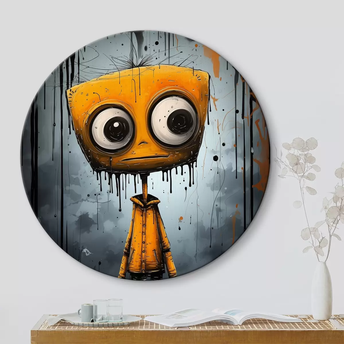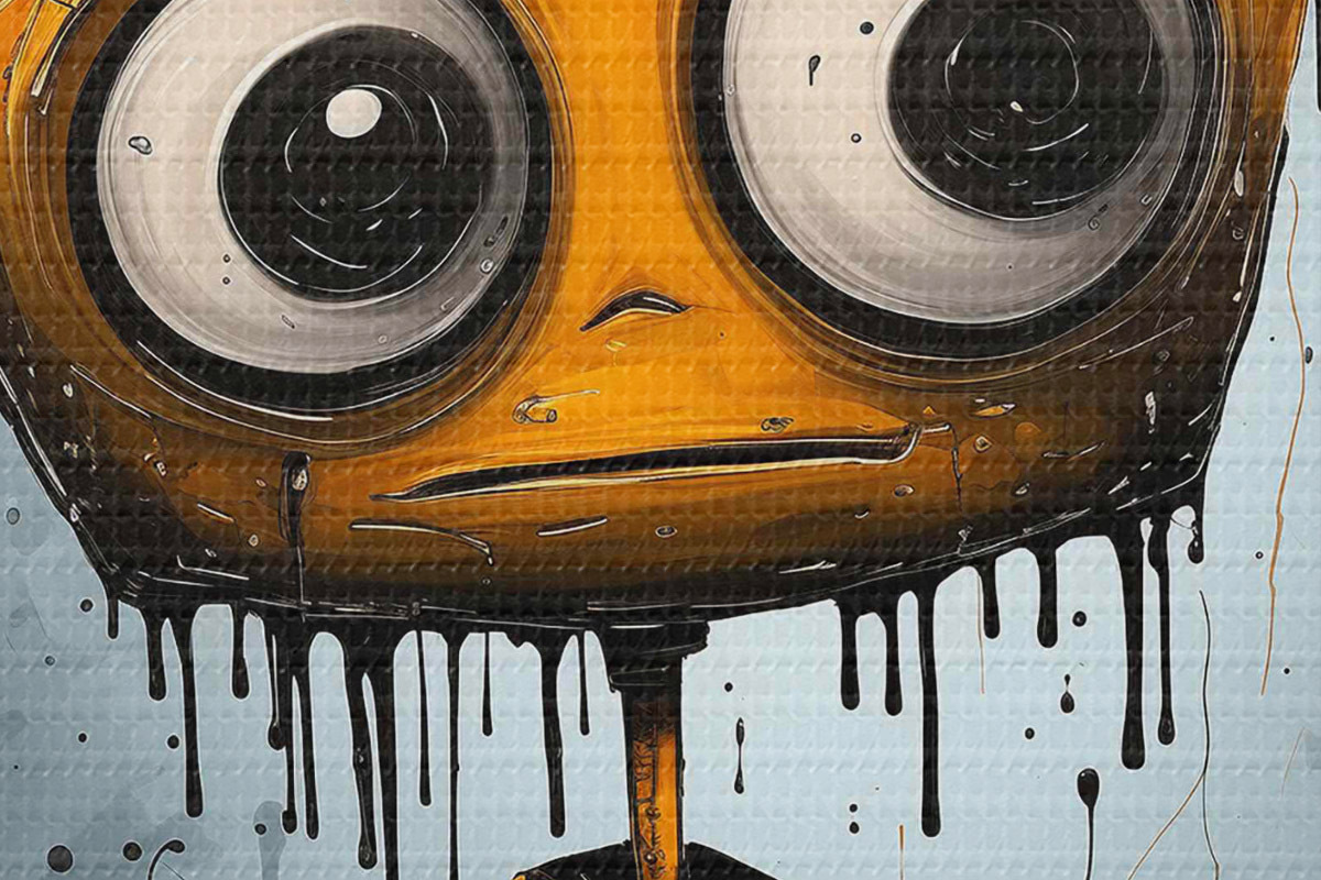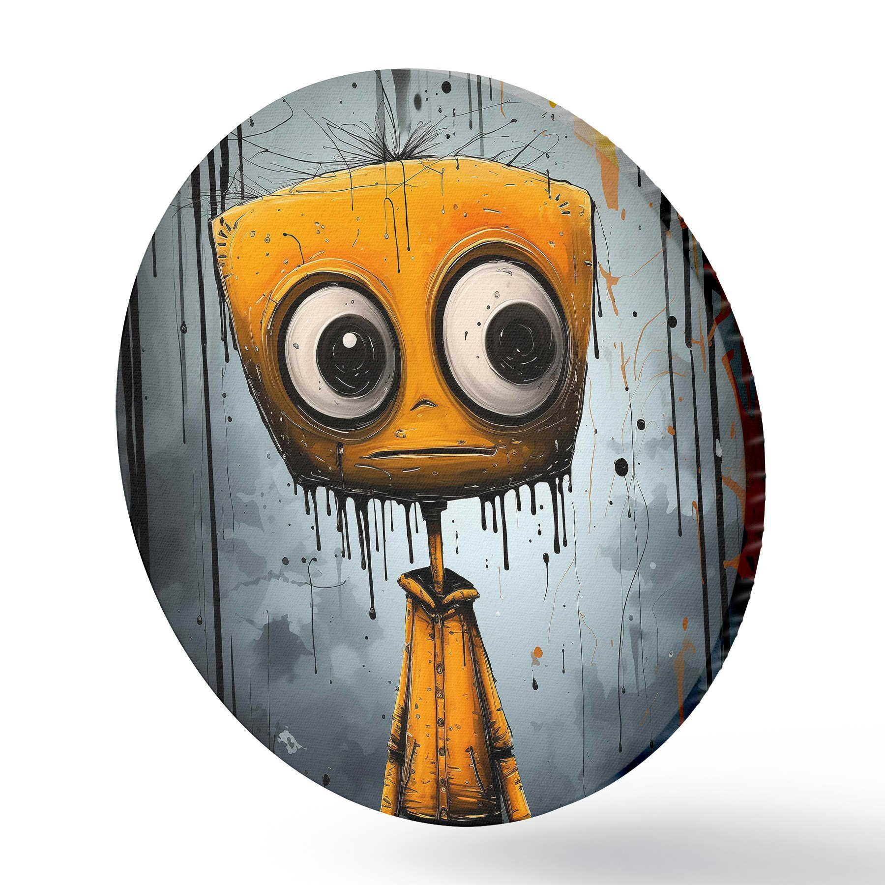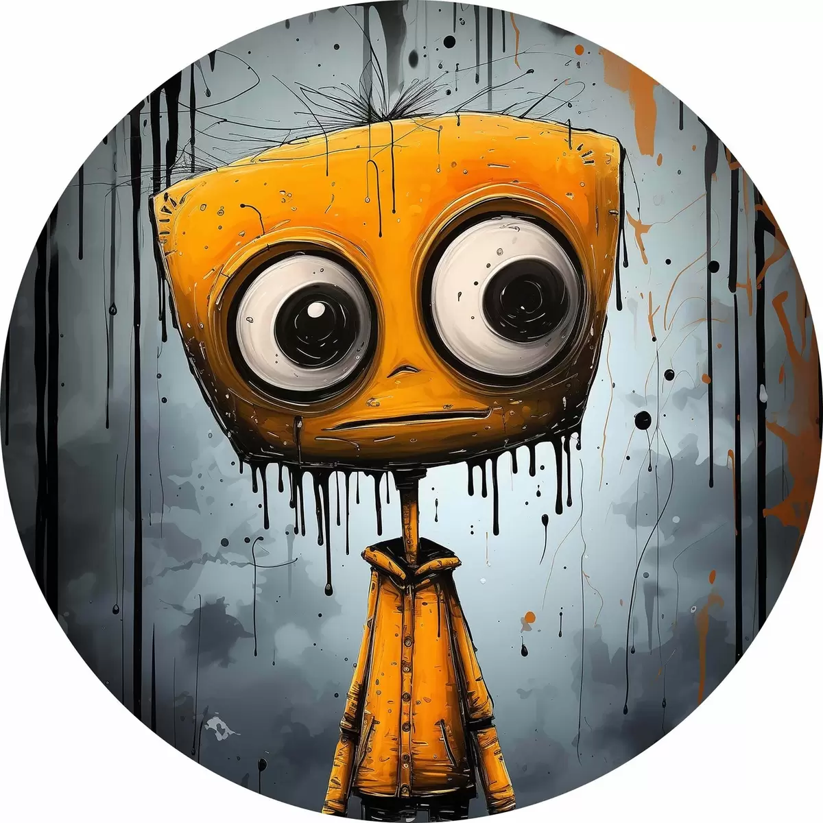 Attēls Multiplikācijas filmu varonis ar kvadrātveida galvu un lielām acīm Nr r37254