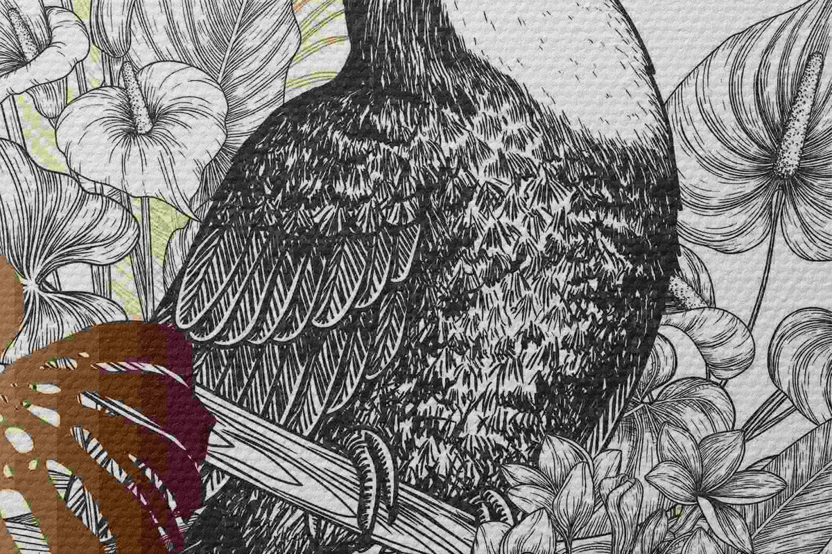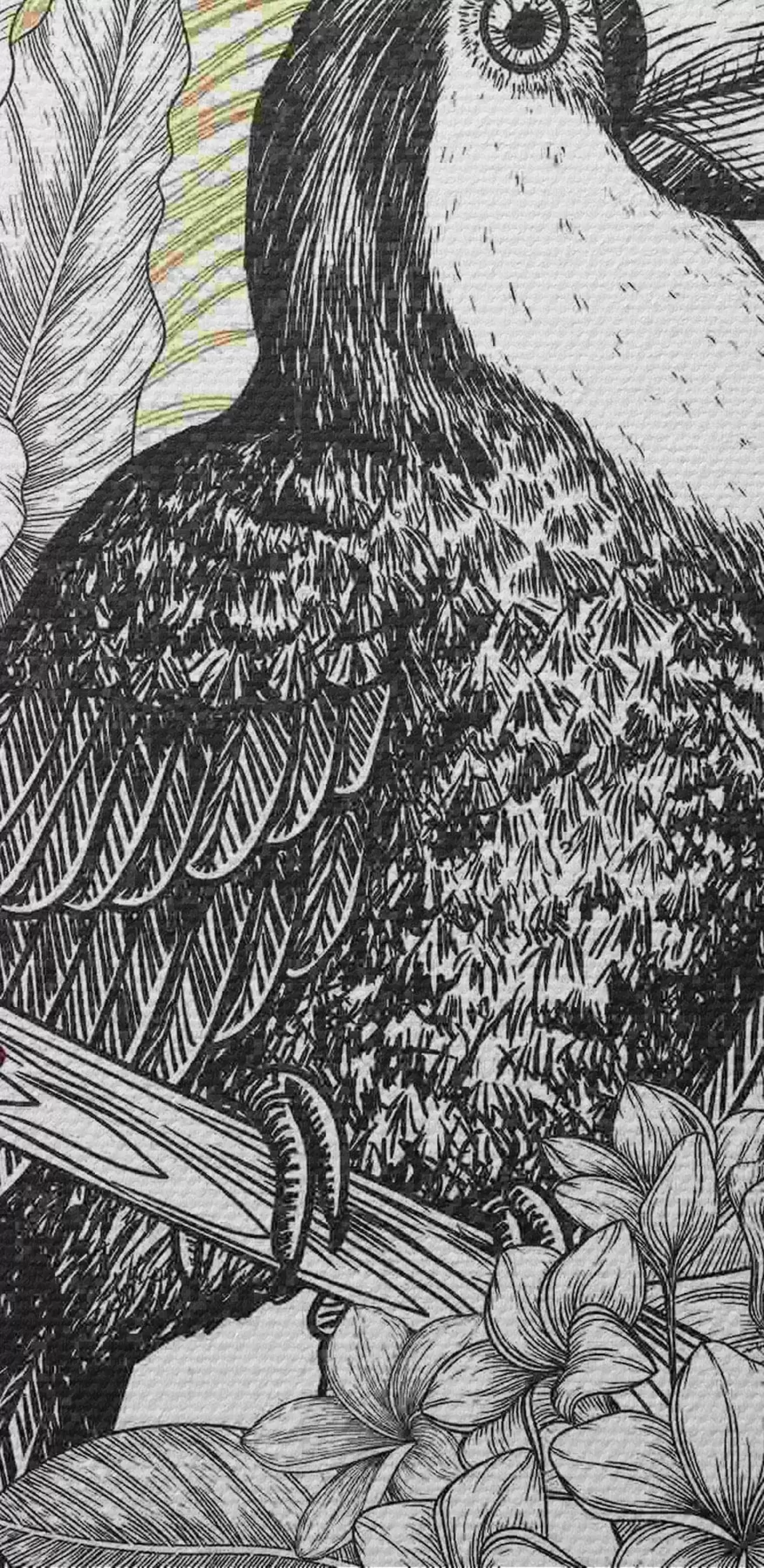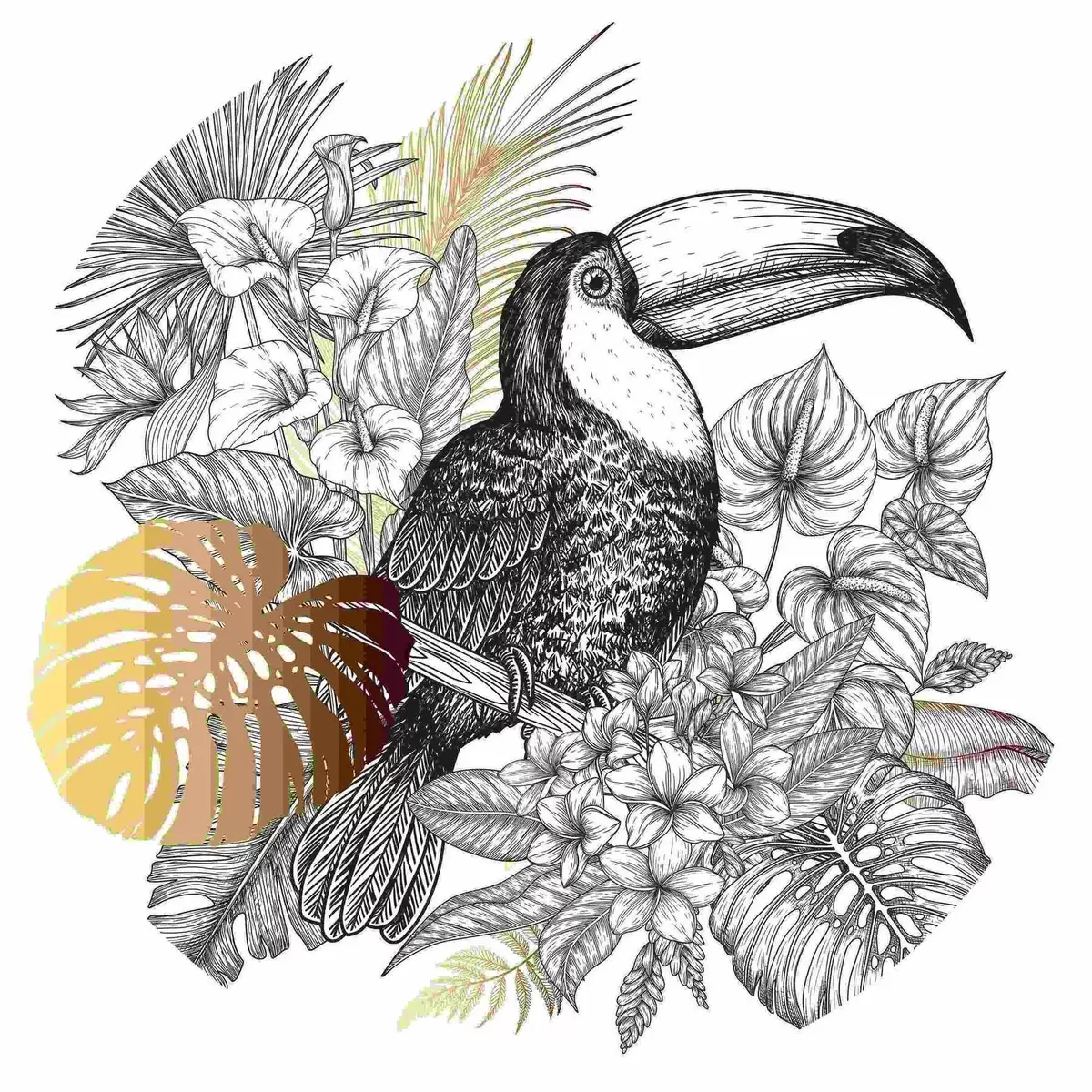 Attēls Tukāns ar lapām un ziediem Nr r37303