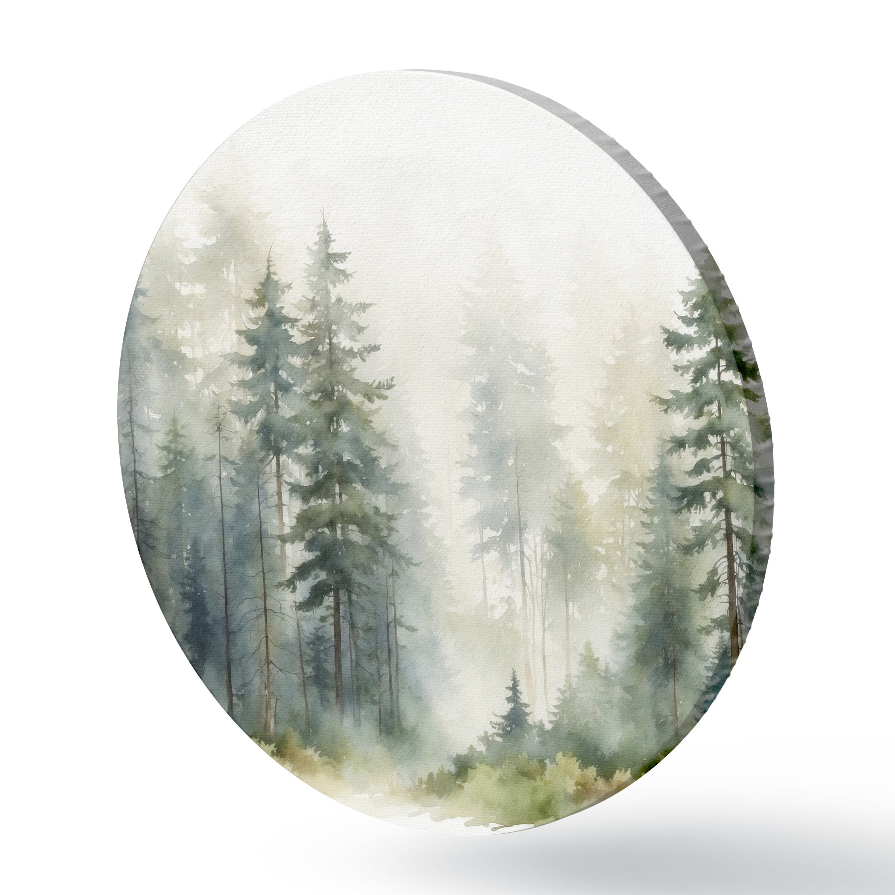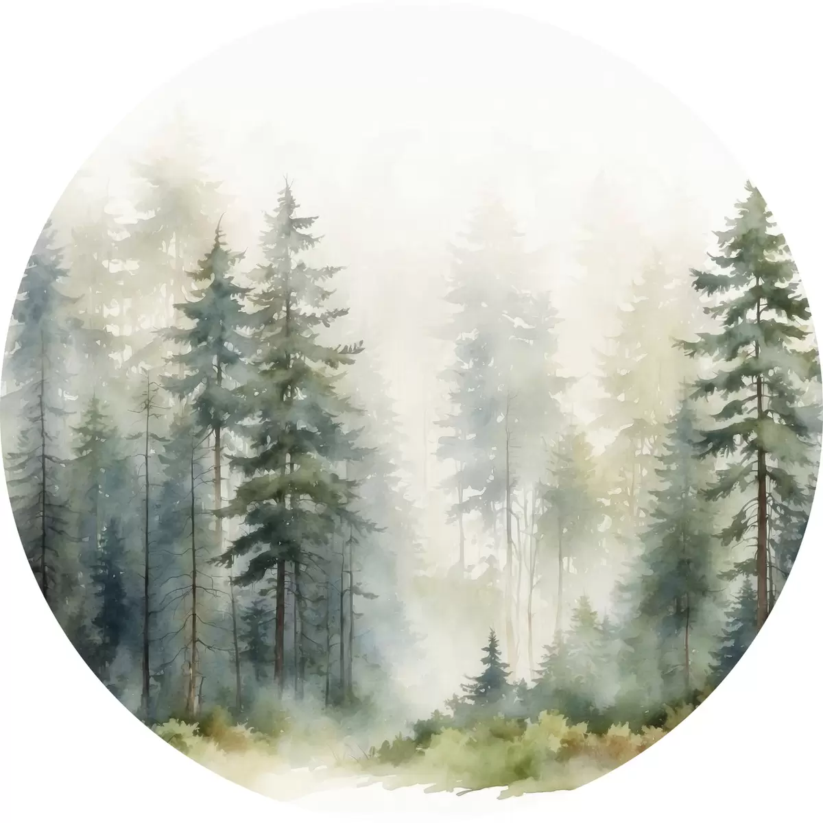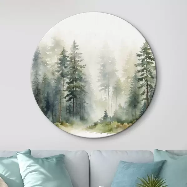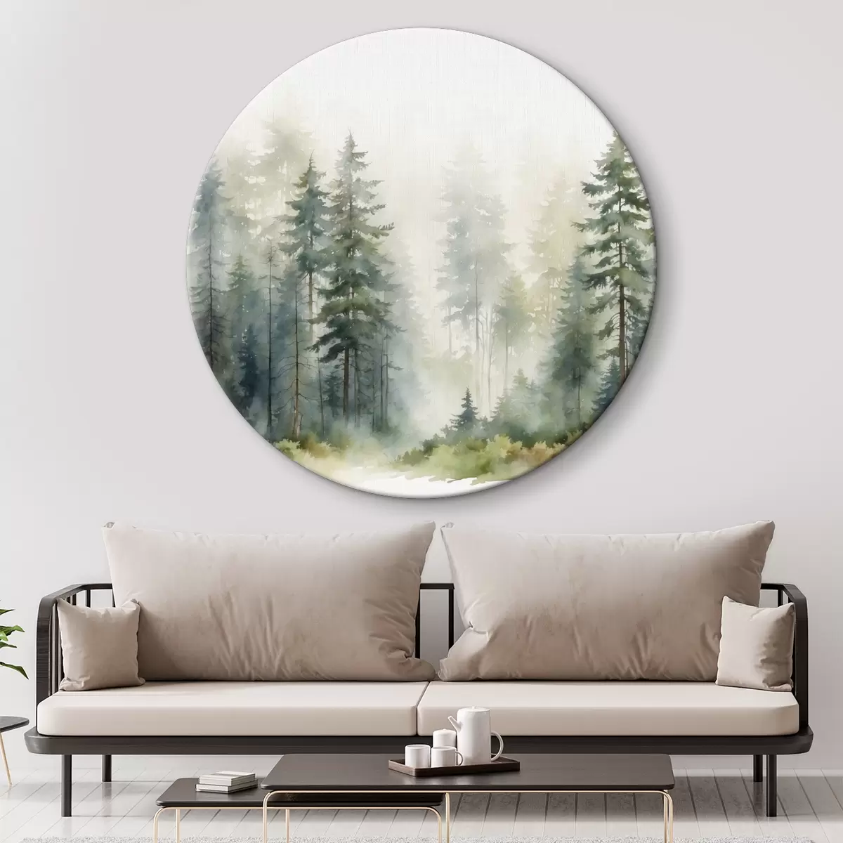 Apaļas gleznas Skujkoku mežs miglā r37337